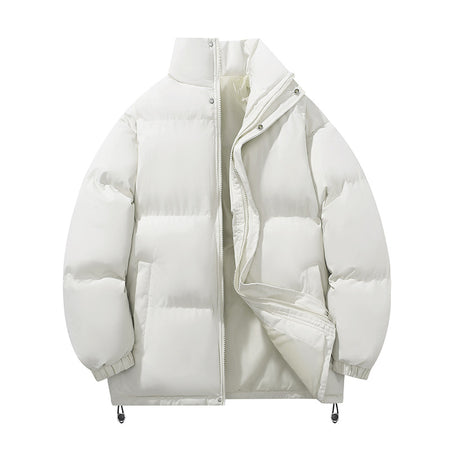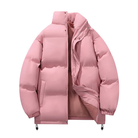 Perfect for cold-weather activities, weekend outings, or city commuting, this down cotton-padded jacket offers superior heat retention while allowing freedom of movement. Its vertical collar and thickened design provide maximum protection from chilly winds. The minimalist solid color ensures effortless styling, while the trendy puffer “bread suit” silhouette keeps you on-trend.