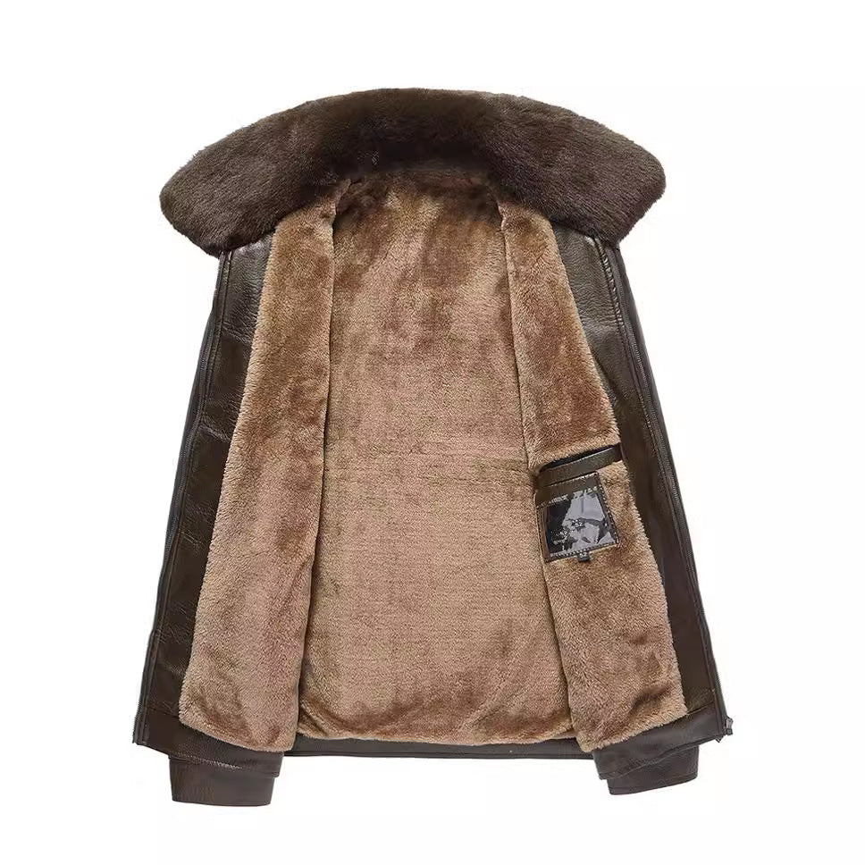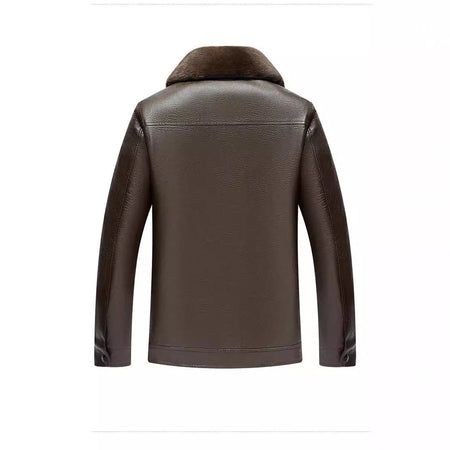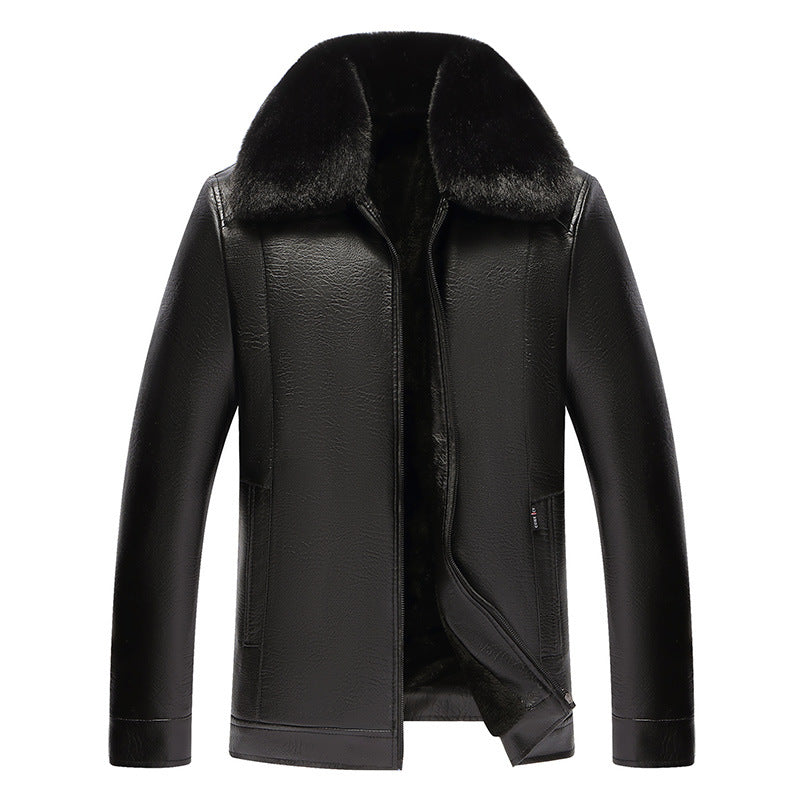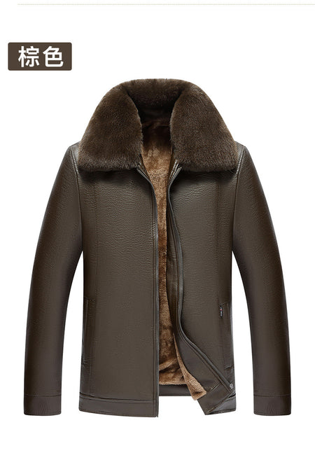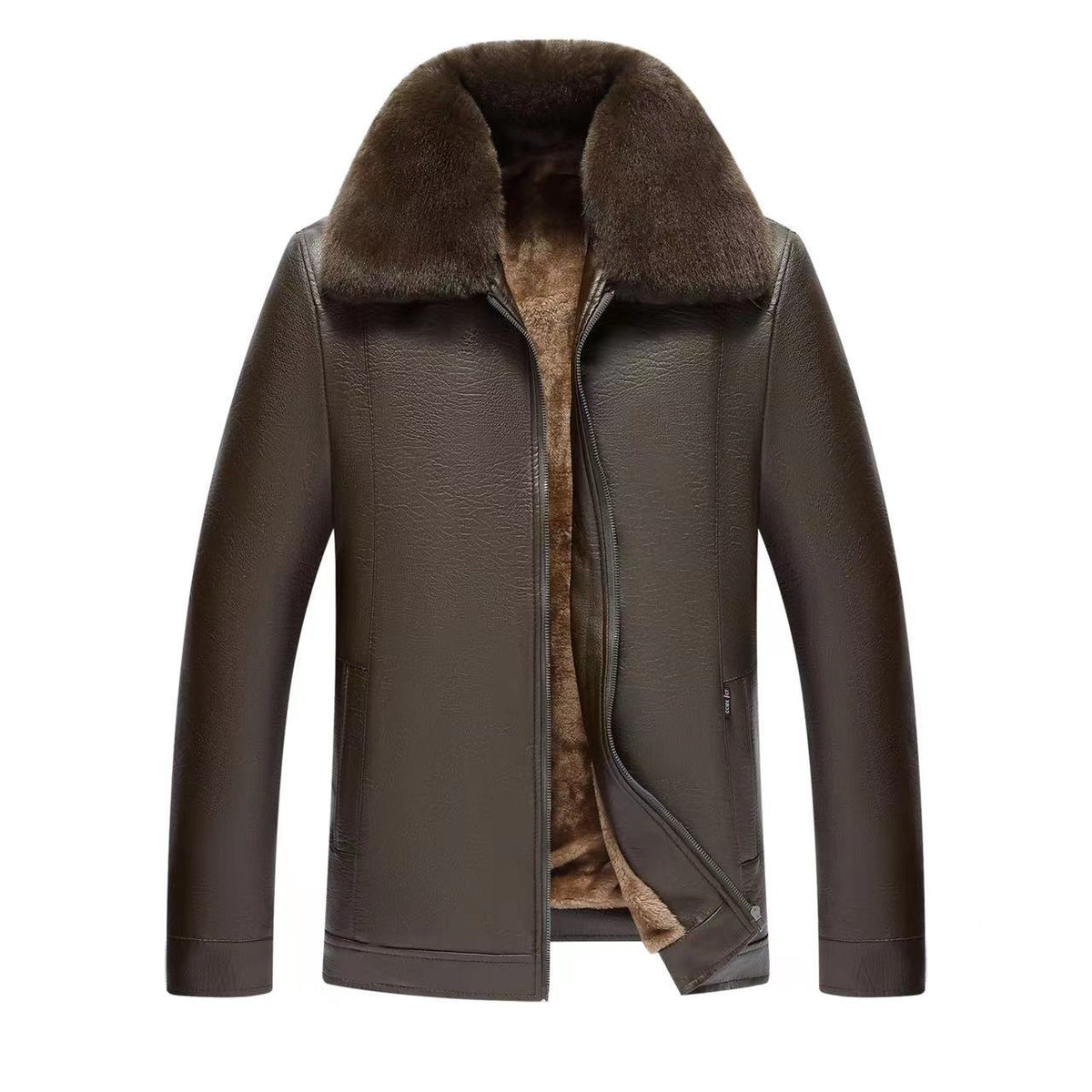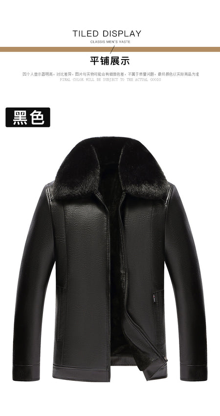 Men’s Fur Collar Leather Coat Fleece-Lined Winter Warm