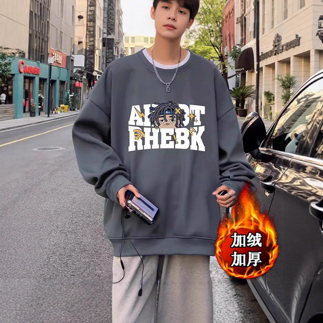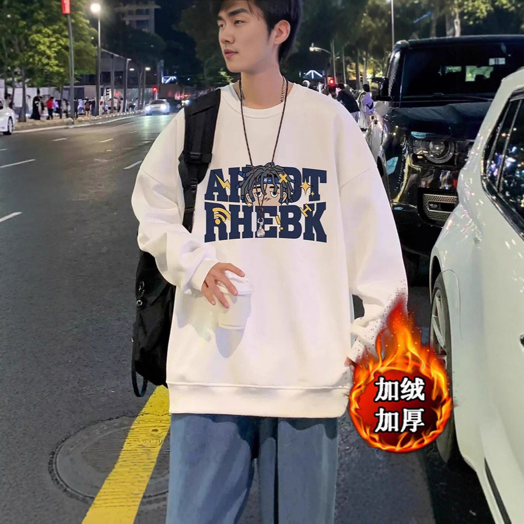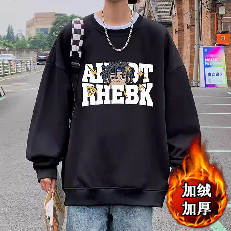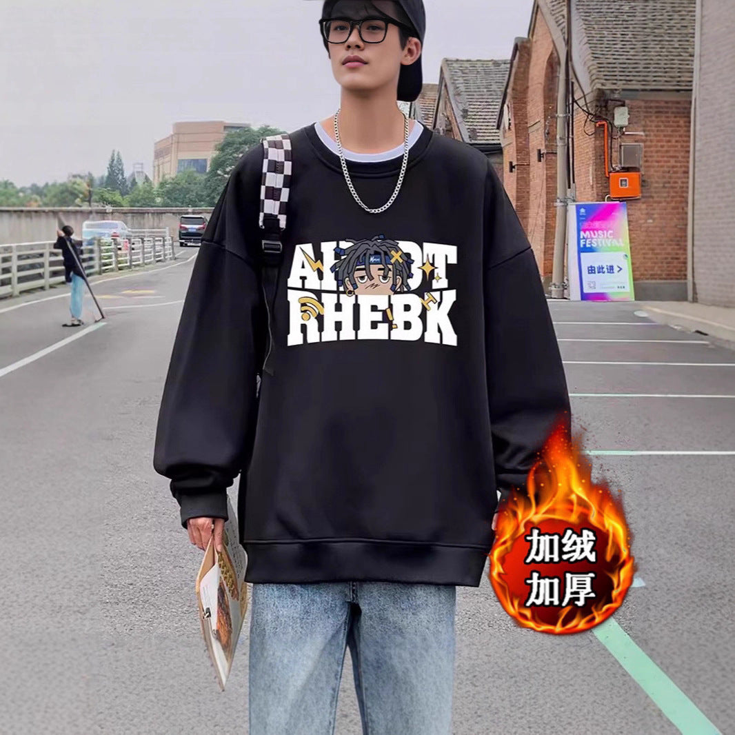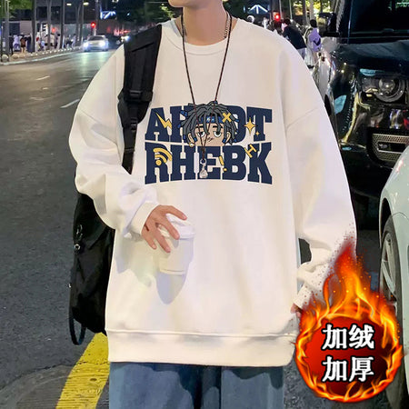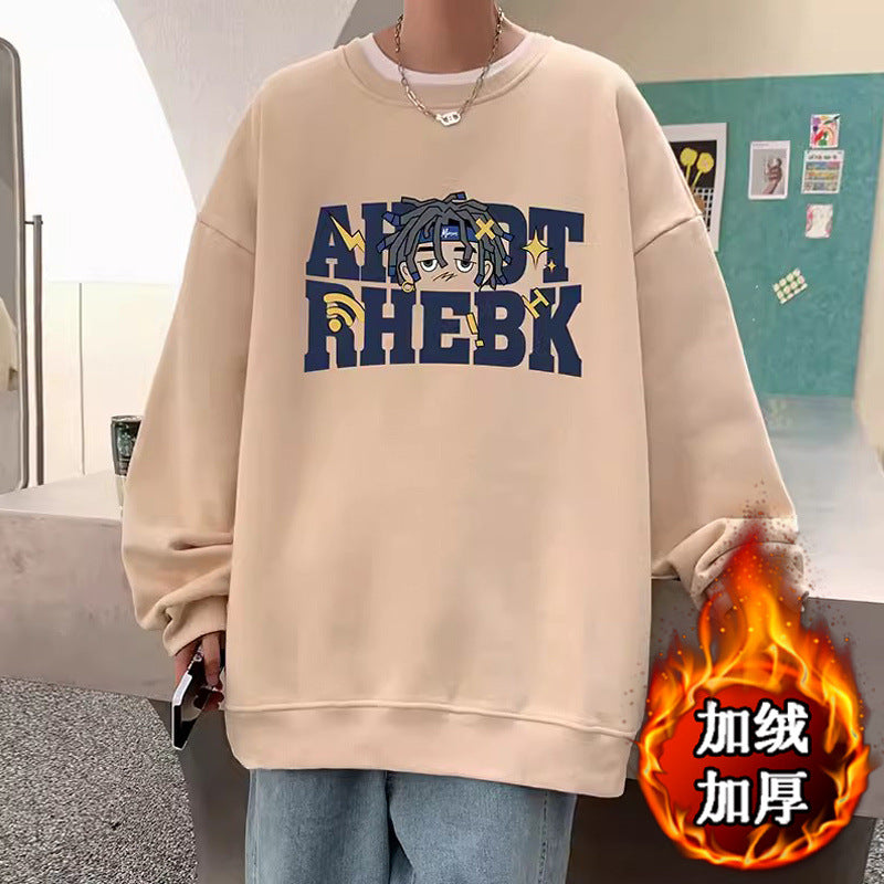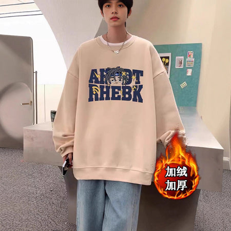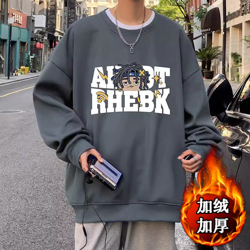 Men’s Loose Round Neck Sweatshirt – Plus Velvet Pullover