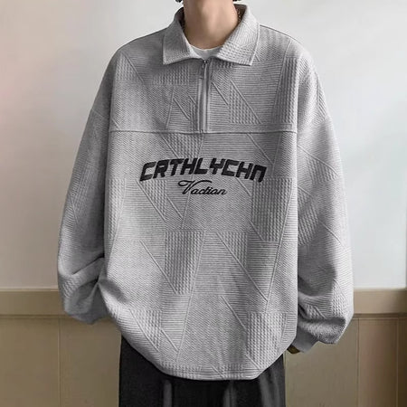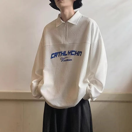 Men’s Japanese Retro Sweatshirt – Letter Print Half-Zip