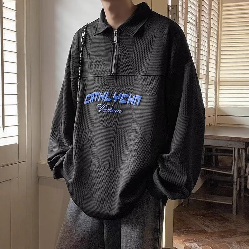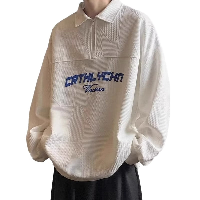 Turn heads in this Japanese retro sweatshirt for men 🇯🇵. Featuring trendy letter prints 🖋️ and a half-zip neckline 🔄, it combines comfort with fashion-forward streetwear.