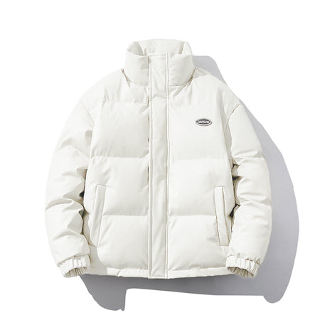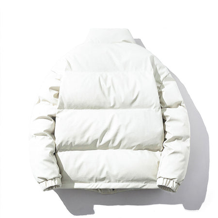 Make a statement with this glossy PU leather bread jacket for men, featuring stand collar and cotton padding. Thickened for winter warmth, it’s perfect for casual outings, streetwear looks, and plus-size options.