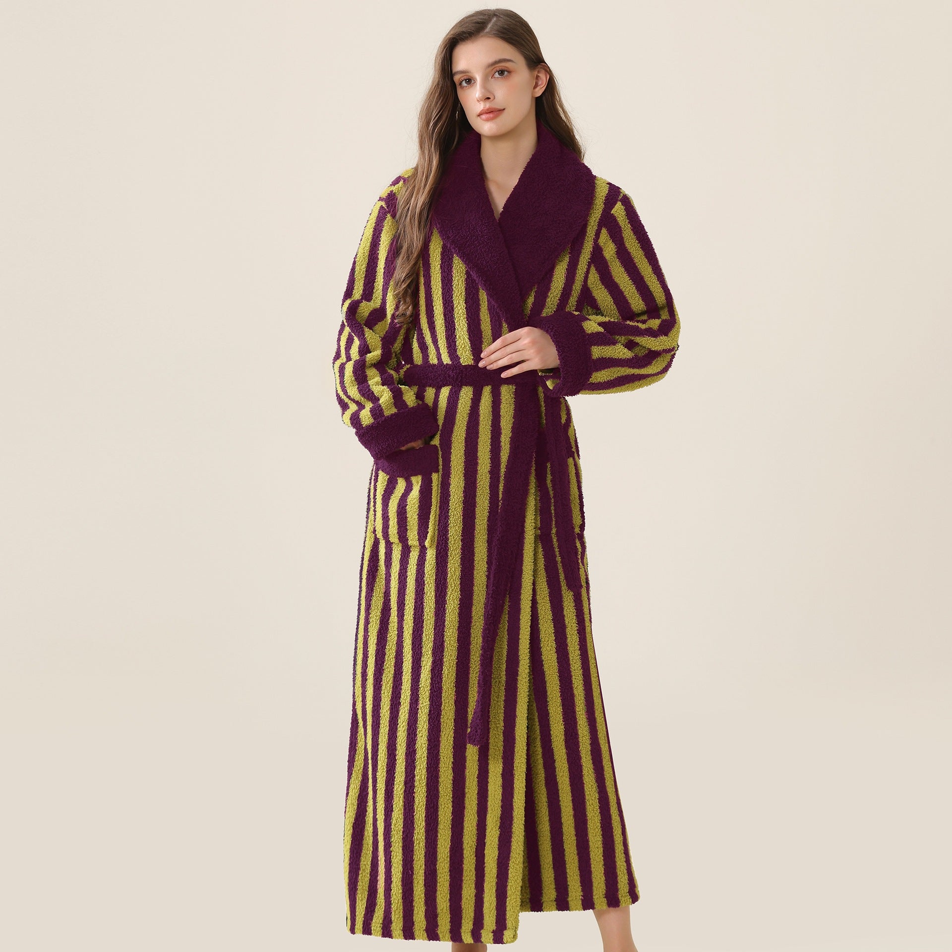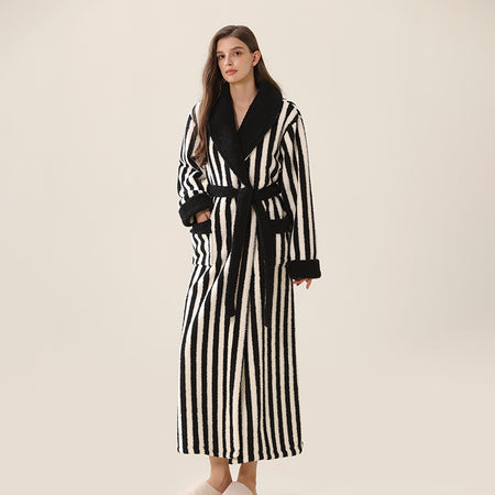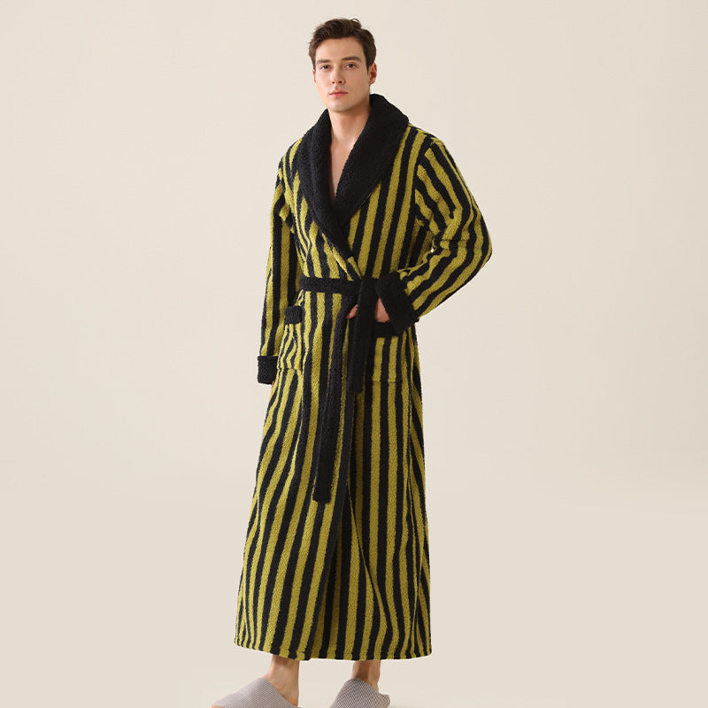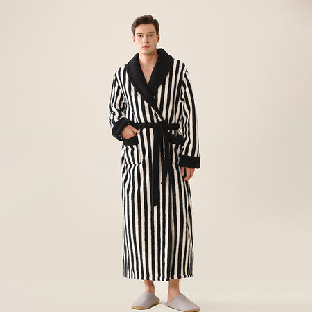 Stay warm and stylish at home with our Cross-Border Exclusive Half-Velvet Nightgown, designed for both men and women. Made from coral velvet and thickened fabric, this long, striped bathrobe provides cozy warmth for autumn and winter. Perfect as home loungewear, it combines comfort, elegance, and durability. ❄️