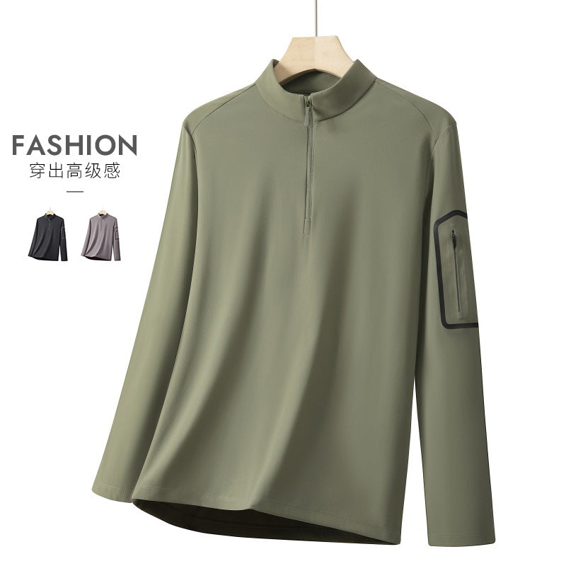 Get ready for cold-weather workouts 🏋️ with this men’s half-zip fleece long-sleeve T-shirt. Designed for elastic stretch and warmth, it’s ideal for indoor and outdoor sports in autumn 🍂 and winter ❄️.