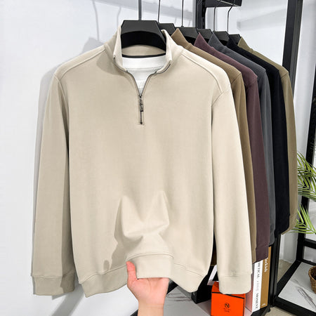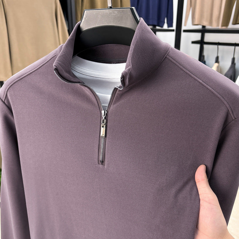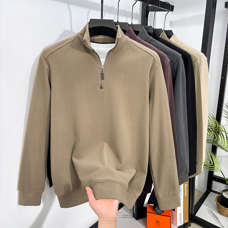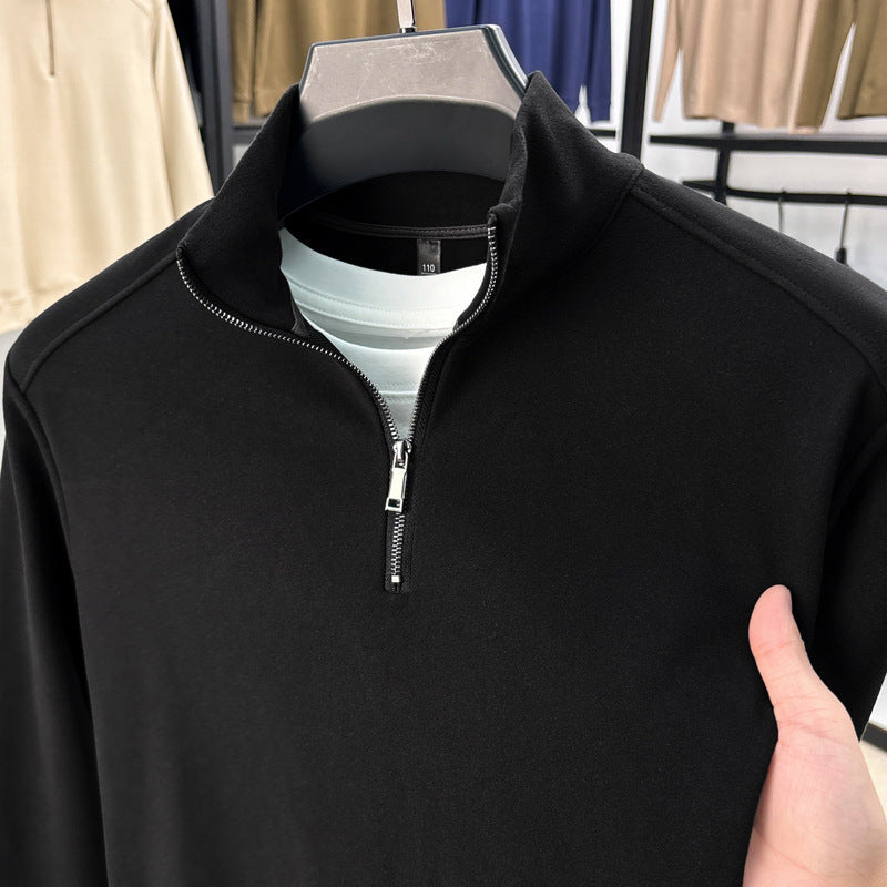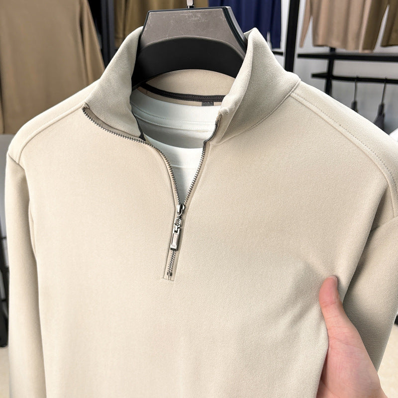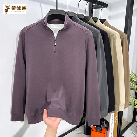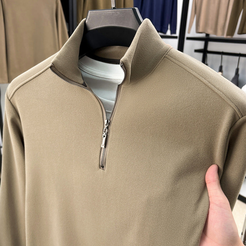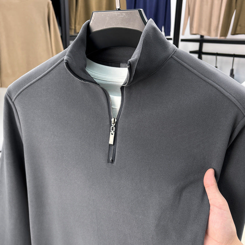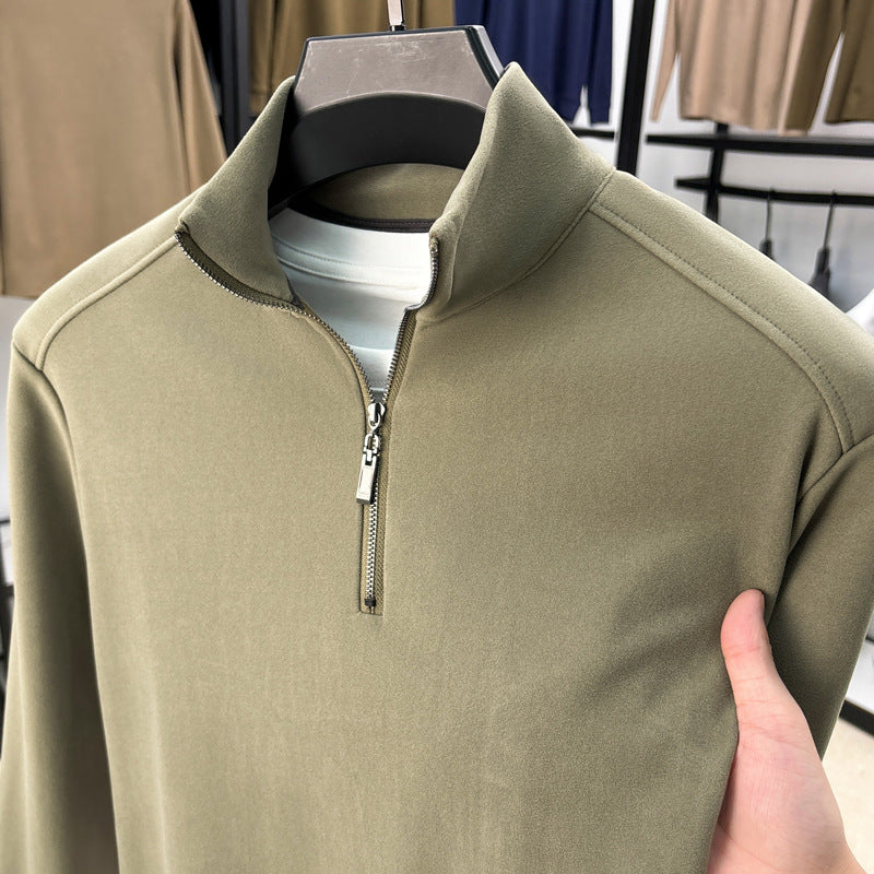 Men’s Velvet Half-Zip Sweatshirt – Warm Stand Collar Top