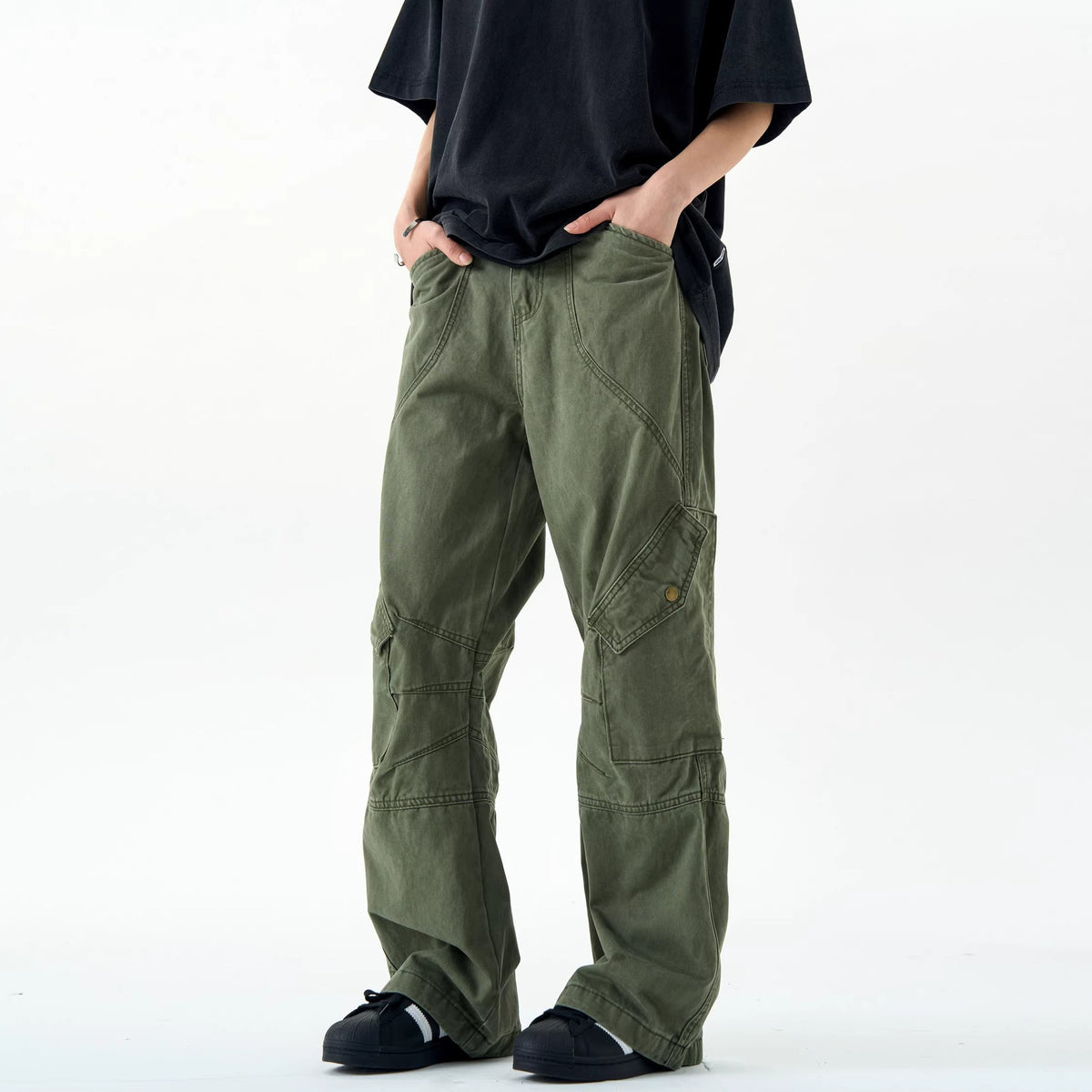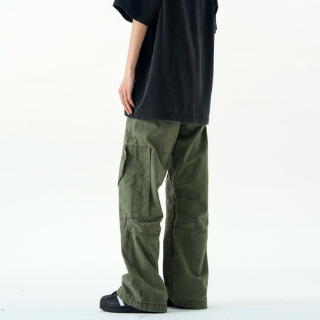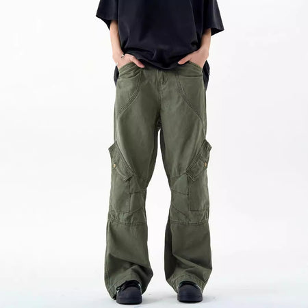 Step into rugged style with these heavy industry cargo pants for men, designed with multiple flap pockets and a wide-leg silhouette. Perfect for 2024 streetwear trends, they balance function and American retro aesthetics.