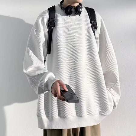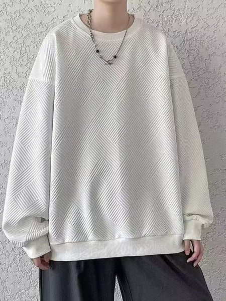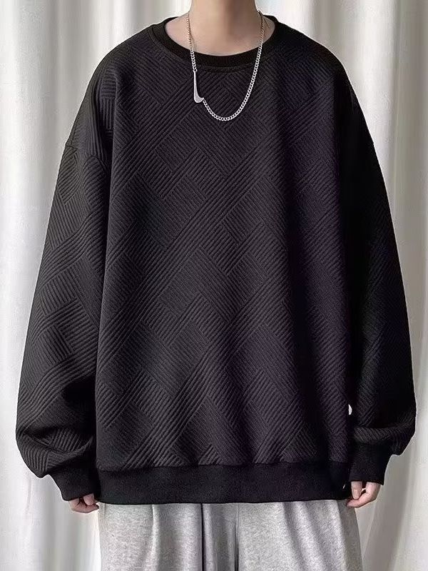 Men’s Heavy Waffle Knit Sweatshirt – Plus Size Loose Fit