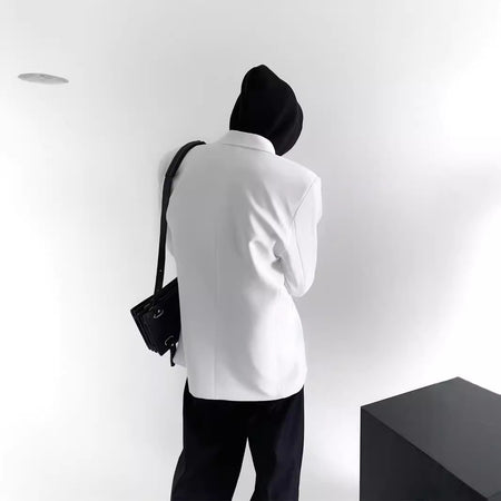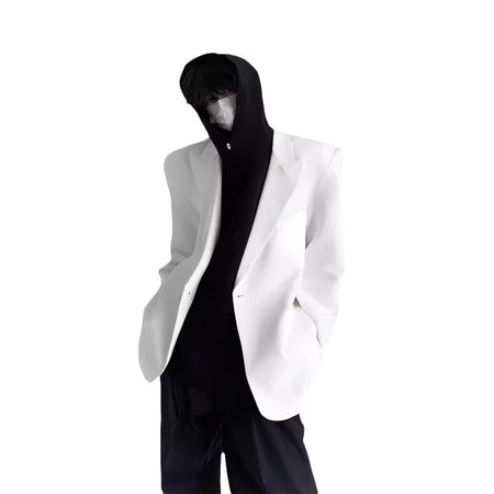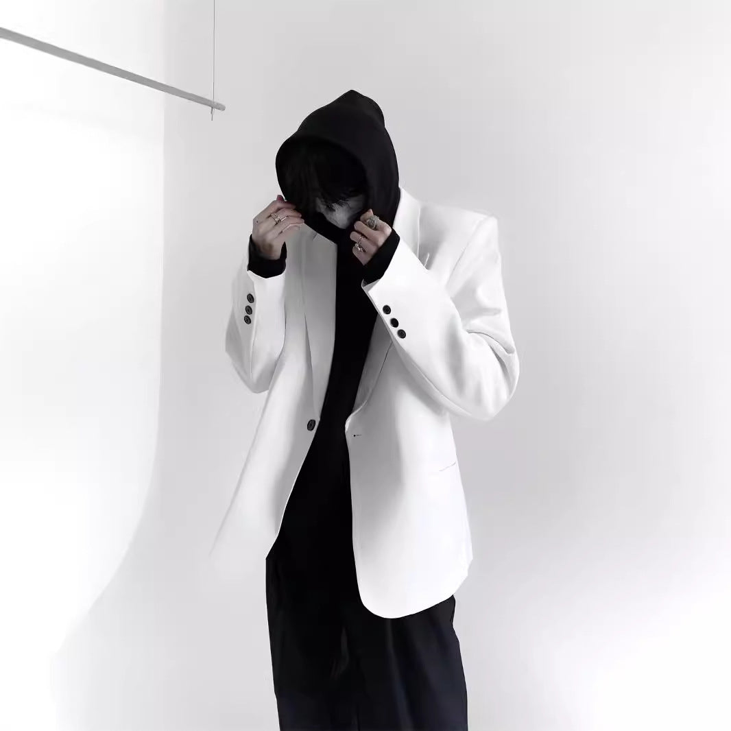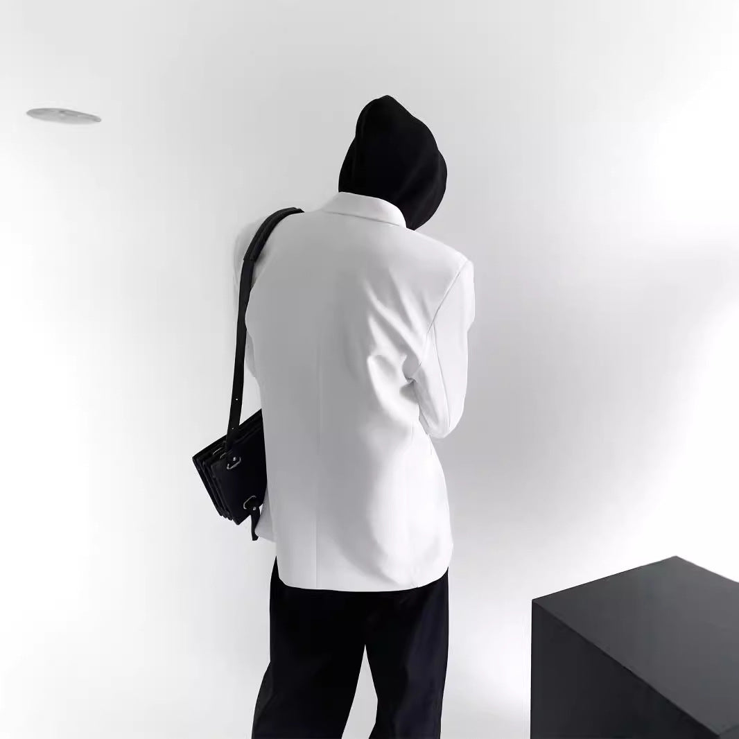 White Shoulder-Padded Men’s Suit Jacket – Korean Casual Style