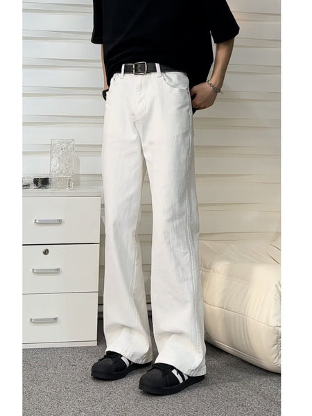 Men’s White Stretch Jeans – Trendy Loose Straight Pants