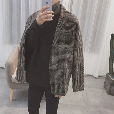Harajuku Plaid Wool Suit Jacket – Korean Loose Casual