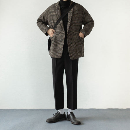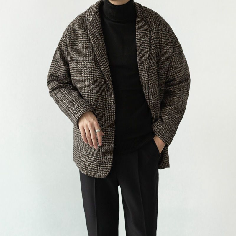 Add a retro edge to your wardrobe with this Harajuku-inspired plaid wool suit jacket. Designed in a loose Korean fit, it brings both warmth and a unique street-style aesthetic to your autumn and winter looks.