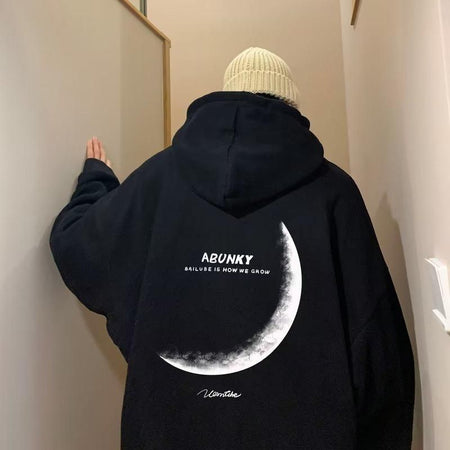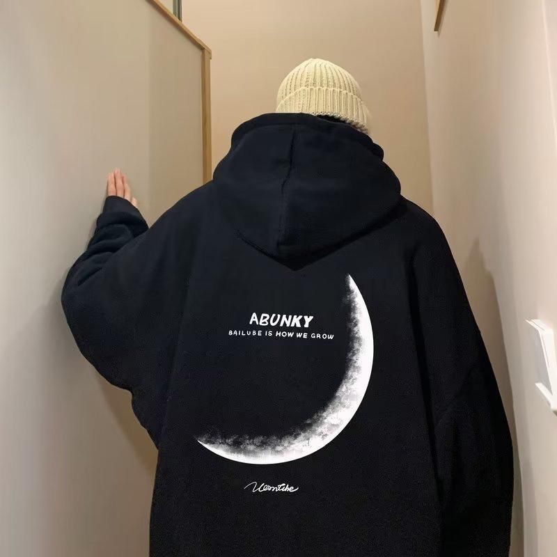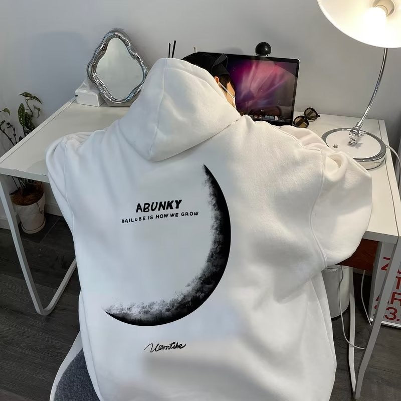 Whether you’re exploring the city 🏙️, attending late-night hangouts 🌌, or creating cool streetwear looks 📸, this moon print hoodie brings comfort and edge together.