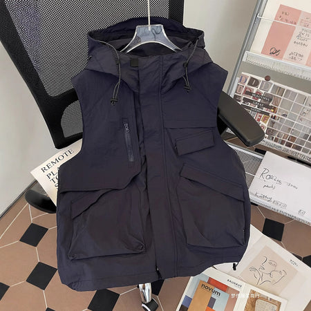 Men’s Hooded Work Vest – Summer Casual Trendy Sleeveless Jacket