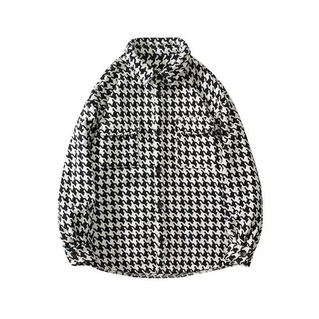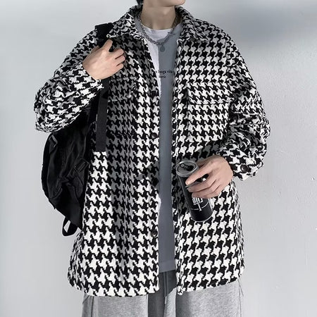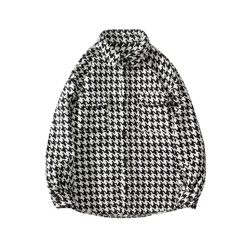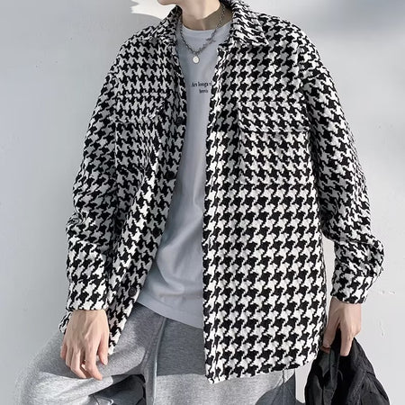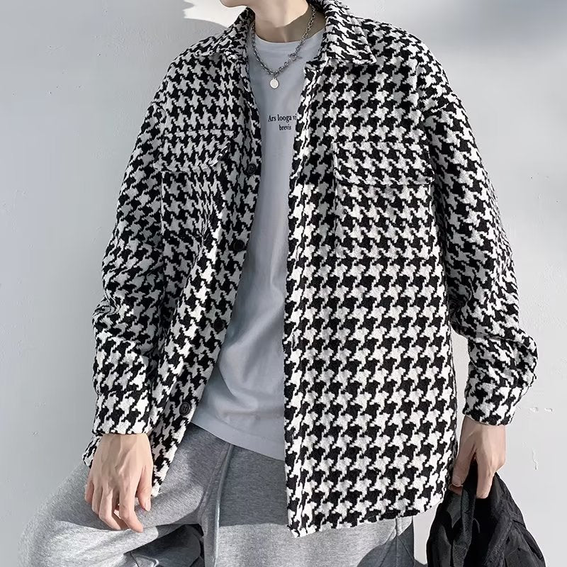 Elevate your wardrobe with this houndstooth men’s overshirt, blending high-end design with everyday wearability. Inspired by Chanel’s timeless pattern, it’s a fashionable yet practical choice for spring and autumn.