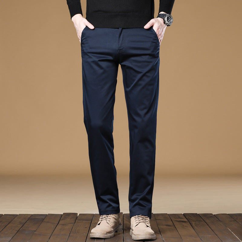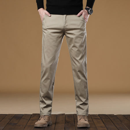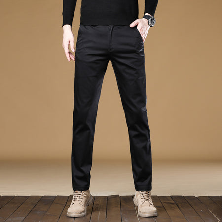 Htn2025 Cotton Straight Casual Pants Men's Autum Classy Cotton Pure Color Fashionable Versatile Men's Pants