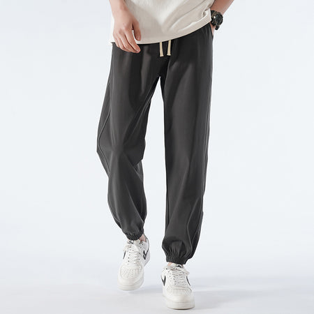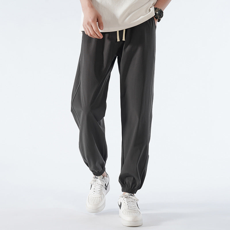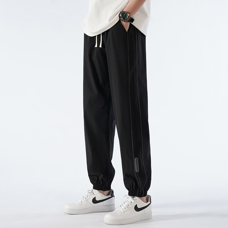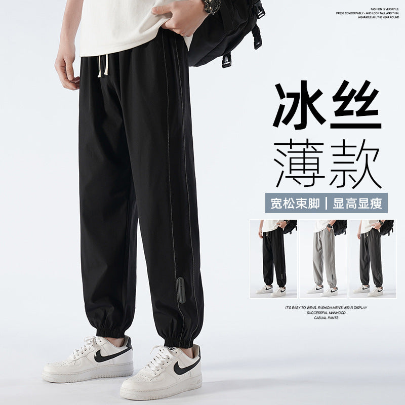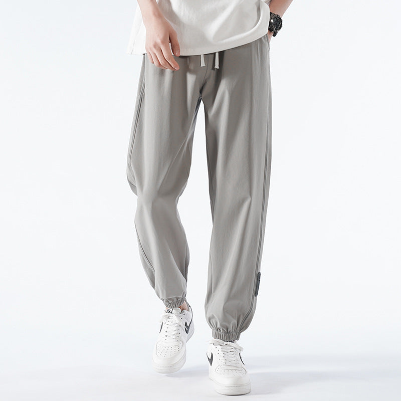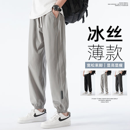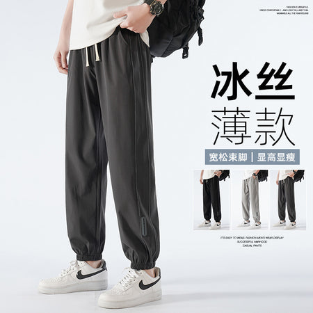 Stay cool and flexible in these nine-point ice silk activewear pants for men, combining a sporty vibe with casual versatility.