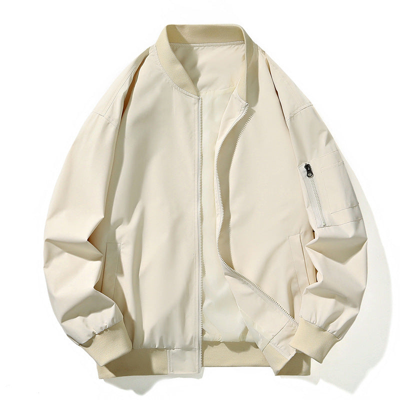 Men’s Solid Color Aviator Baseball Jacket – Spring & Autumn
