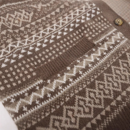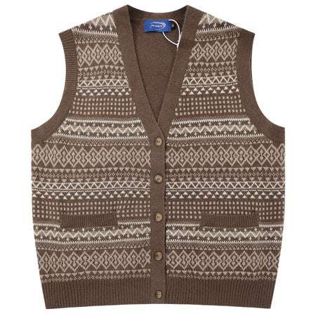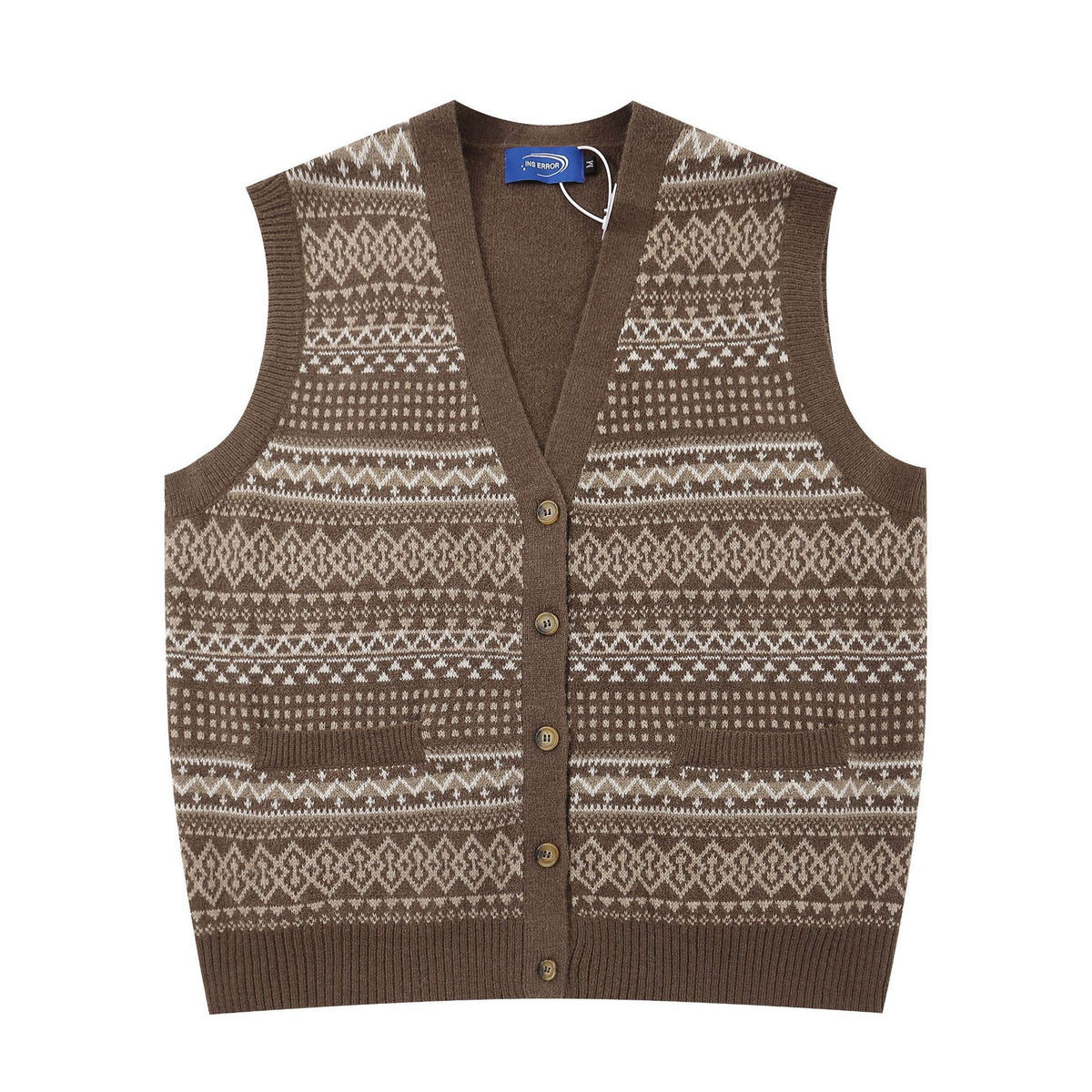Japanese Style Vintage Ethnic Style Jacquard Cardigan Vest Sweater V-Neck Loose Knitted Sweater All-Match Casual Couple Shirt