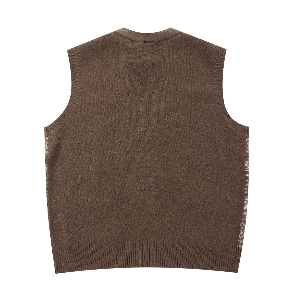 Bring timeless charm to your wardrobe with this Japanese-style vintage sleeveless sweater vest, crafted with an ethnic jacquard pattern that blends tradition with modern streetwear. Its loose fit and V-neck cardigan style make it an ideal piece for layering, whether you’re dressing casually or styling as a couple outfit.