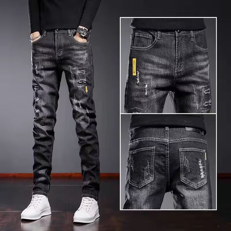 Ripped Cropped Slim-Fit Jeans Men 2025
