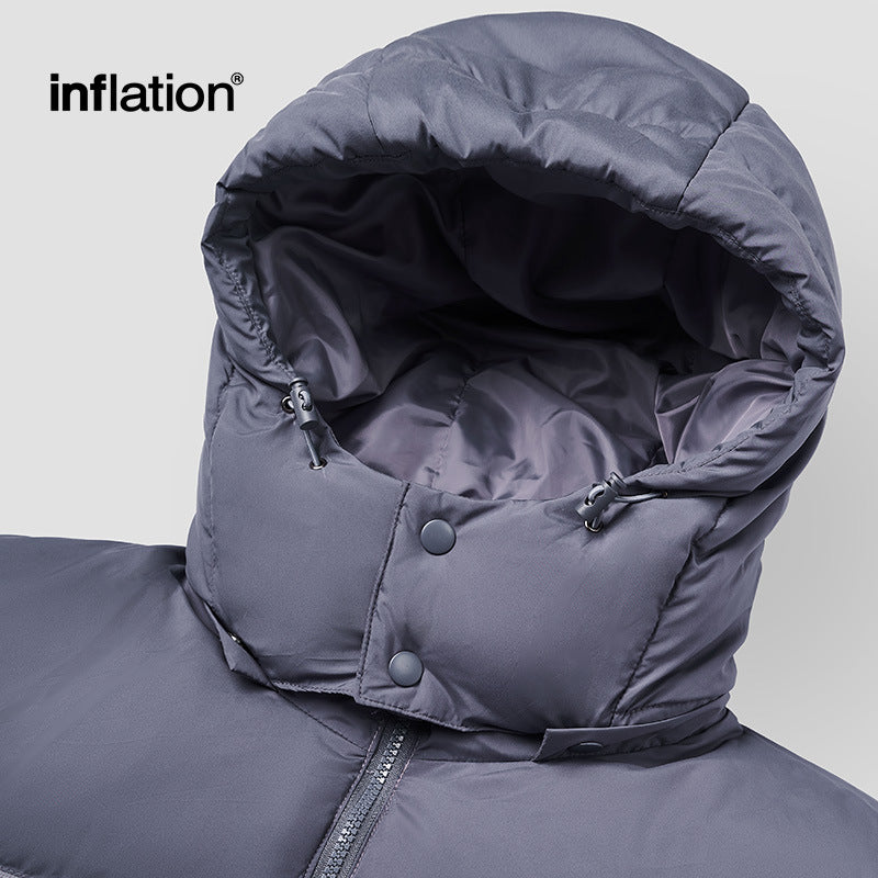 Stay ahead of the trend with our high collar hooded men’s puffer jacket, a 2024 autumn and winter must-have. With its distinctive bread-style silhouette and premium 90% velvet filling, this coat delivers ultimate warmth and streetwear-inspired style.
