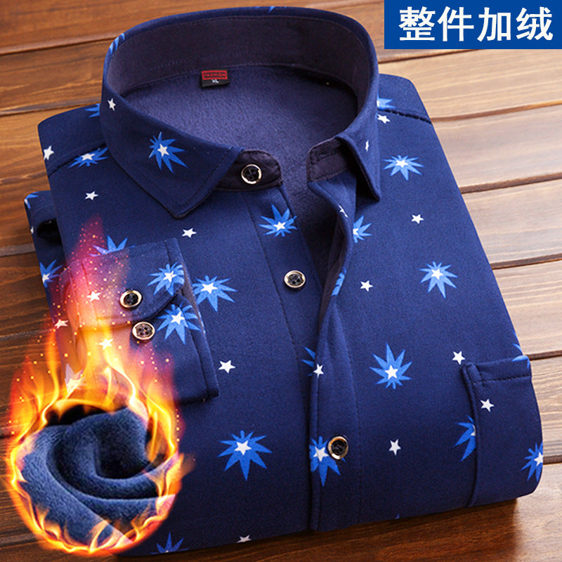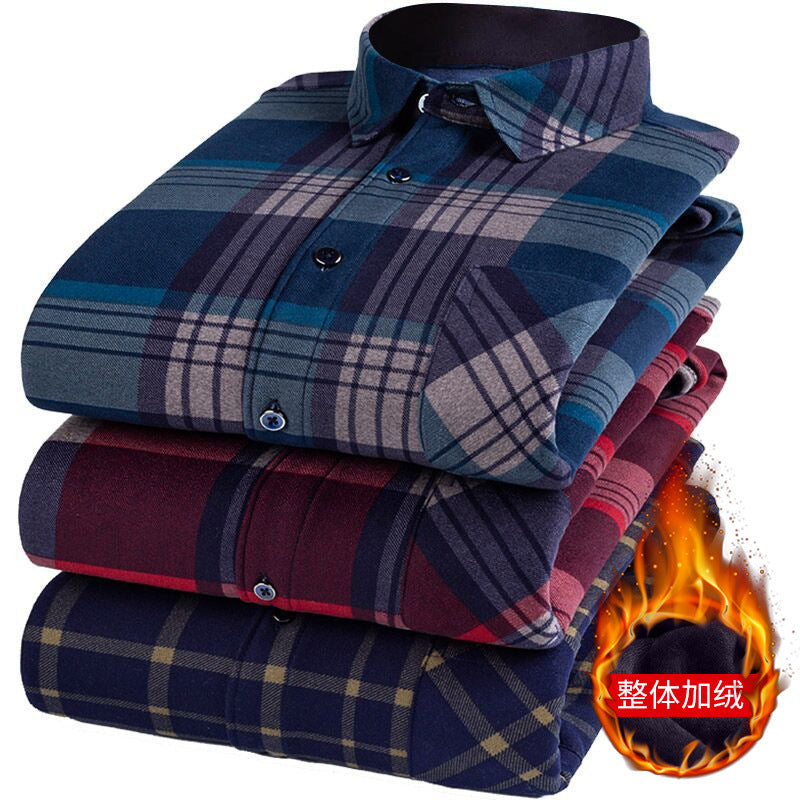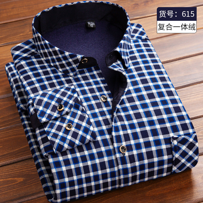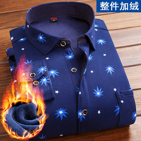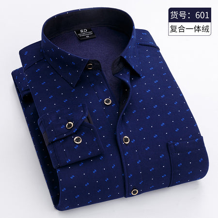 Men’s Fleece-Lined Warm Shirt for Autumn Winter Business Wear