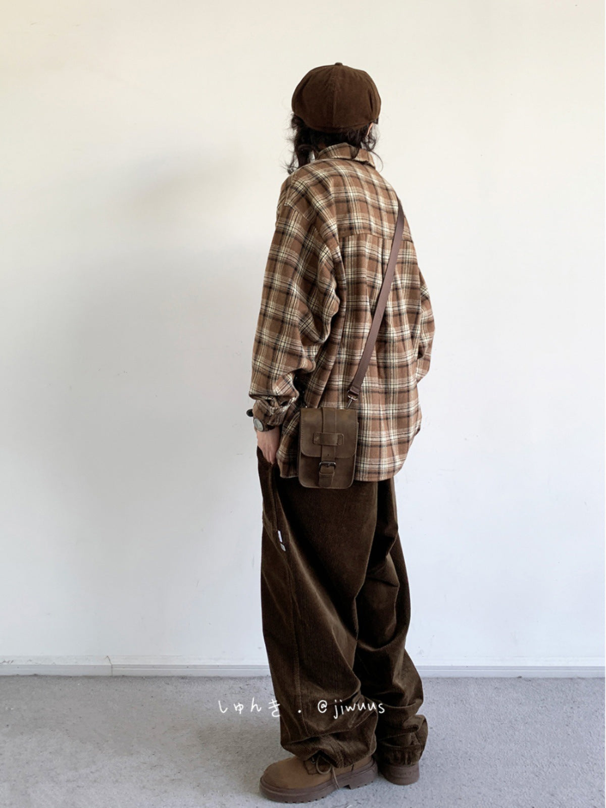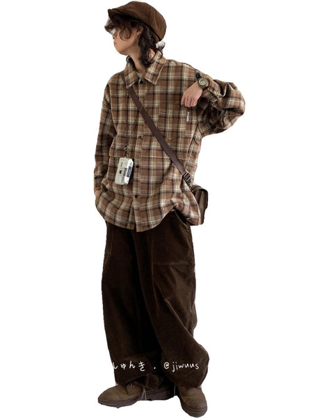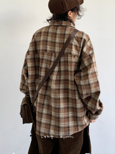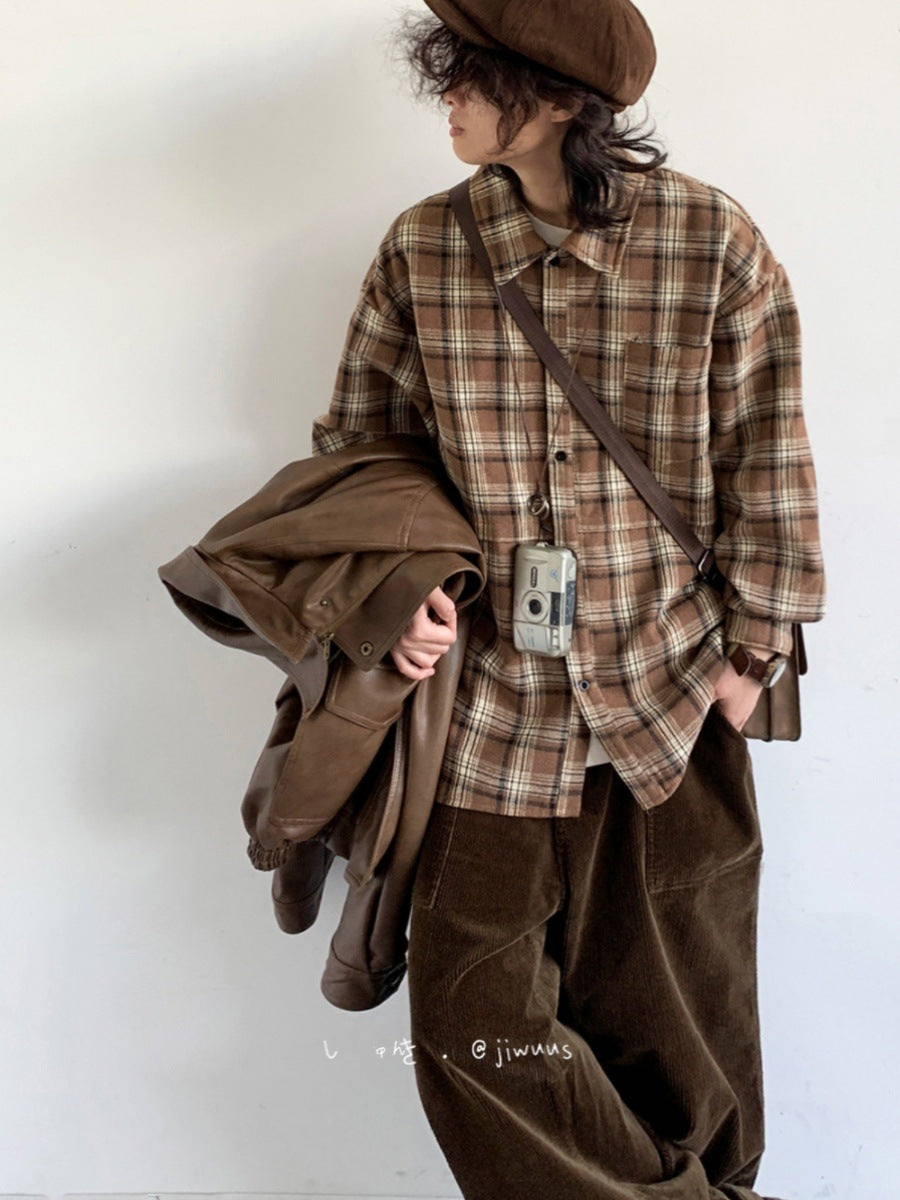 Retro Woolen Plaid Men’s Overshirt Lazy Spring Jacket