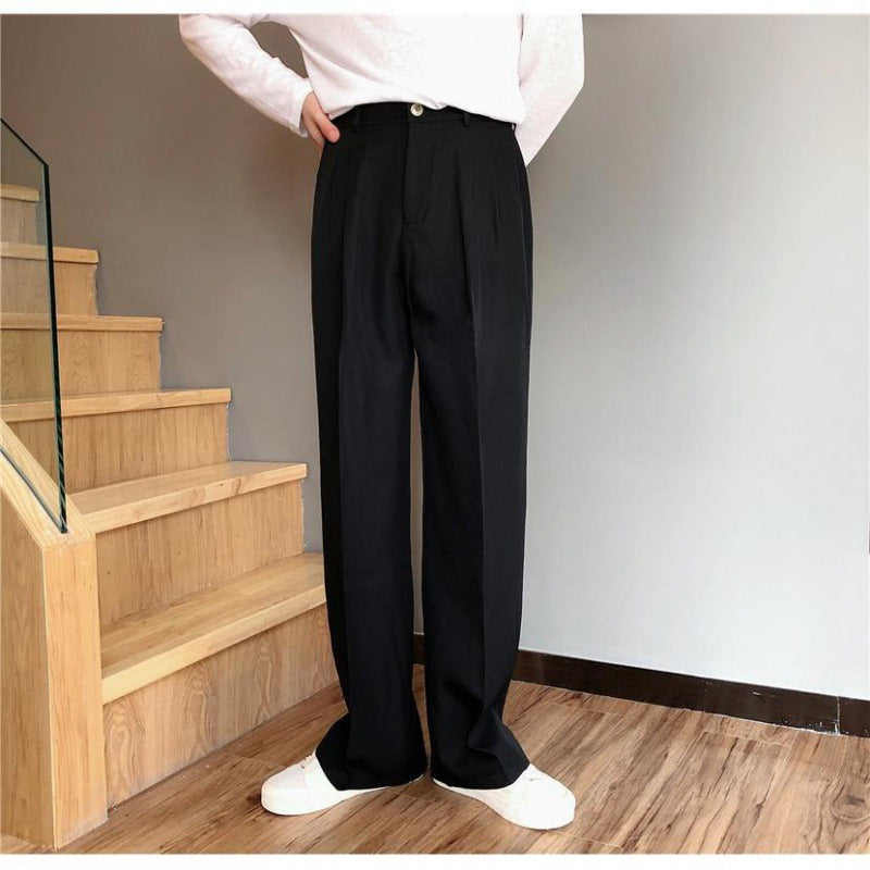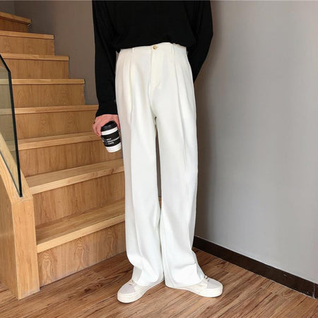 Men’s White Suit Pants – High-End Korean Wide-Leg Trousers