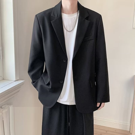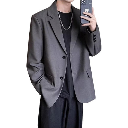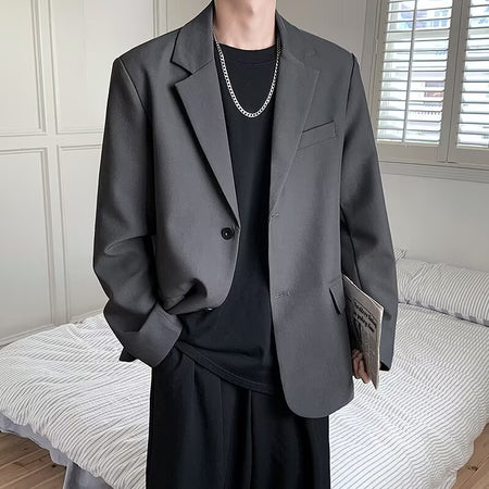 Find the perfect balance of comfort and elegance with this loose men’s casual suit jacket. Inspired by Korean fashion, it embodies a light mature style — designed for boys and young men seeking trend-forward outerwear.