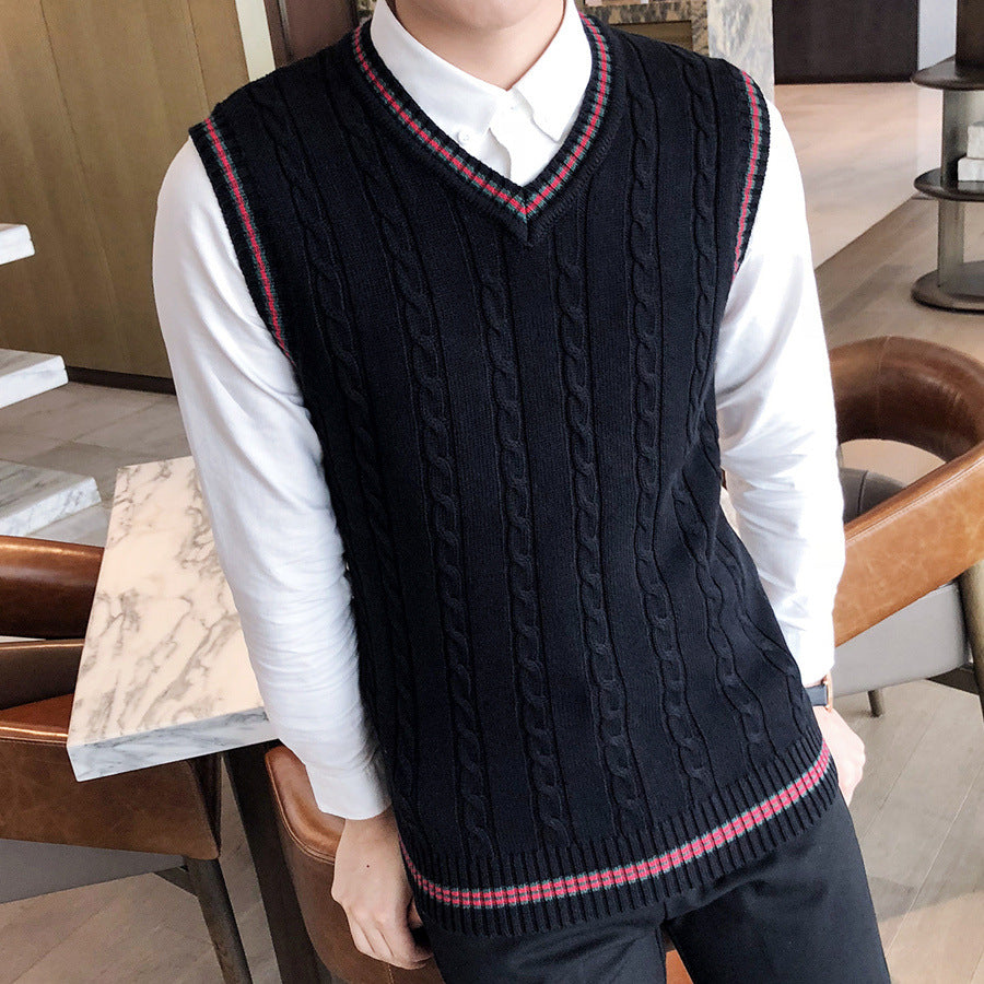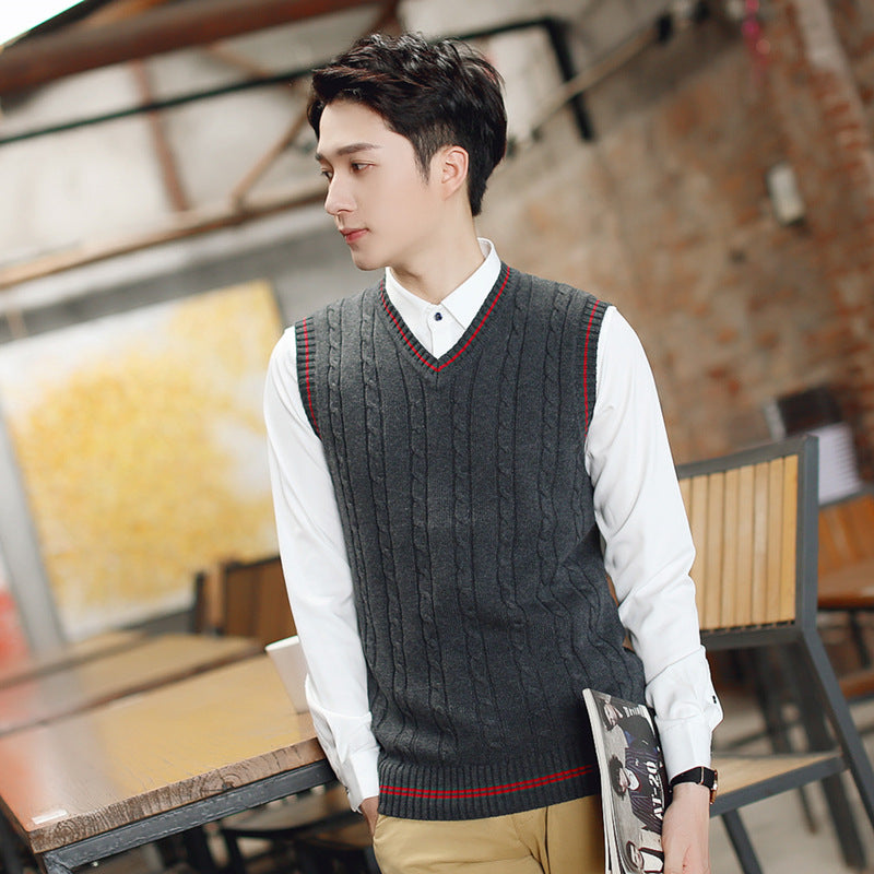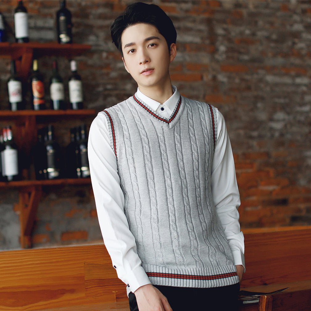 Korean Style Men’s Slim Woolen V-Neck Sweater Vest