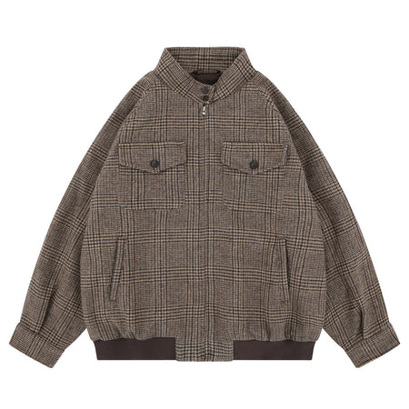 This men’s vintage Harrington jacket takes inspiration from the Maillard color trend, featuring a houndstooth wool pattern with a clean-fit silhouette. The classic Harrington design paired with a contrasting wool collar delivers a retro yet modern aesthetic, making it perfect for autumn and winter streetwear.