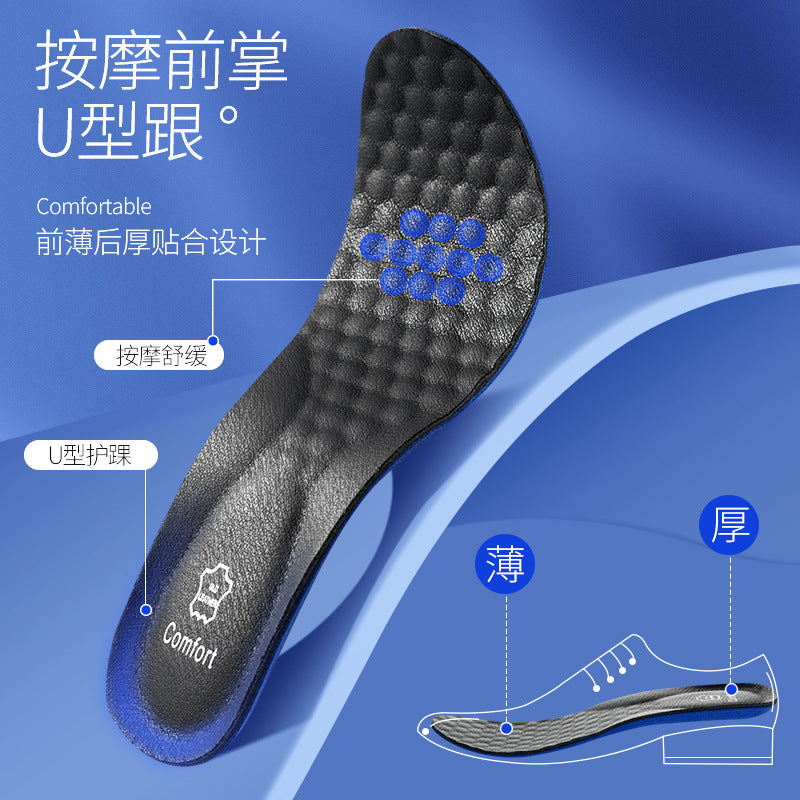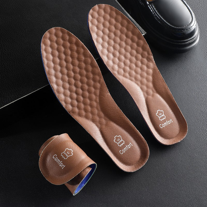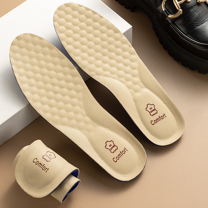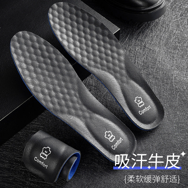 Leather Cowhide Sports Insoles Men Anti-Pain Thick