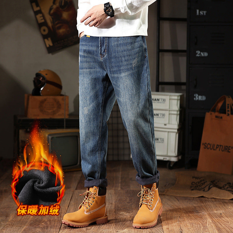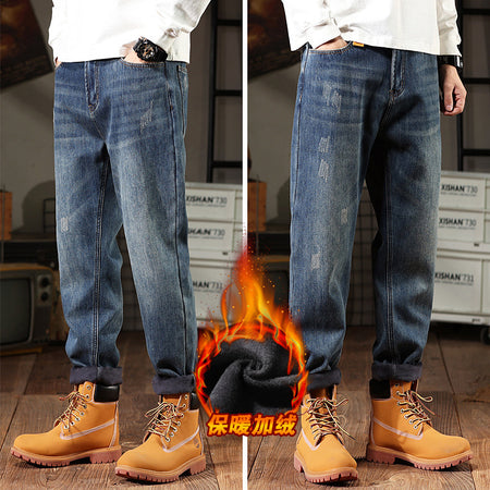 Warm Loose Fit Fleece Jeans for Men Nepal Winter
