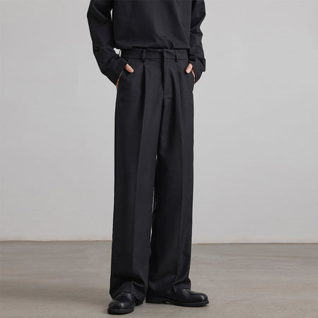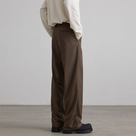 Add a modern twist to your outfit with these pleated A-line suit pants. Designed for both men and women, they bring high-end drape and comfort with a loose silhouette.