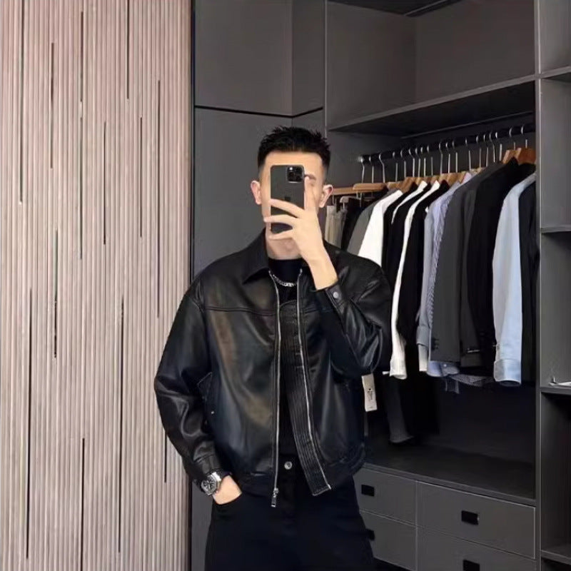 Men’s Autumn PU Leather Motorcycle Jacket Casual Loose Fit