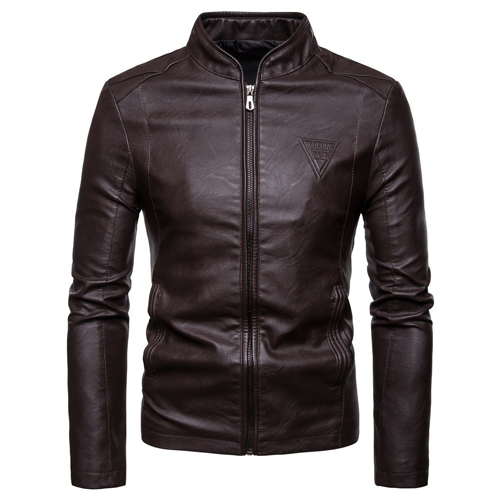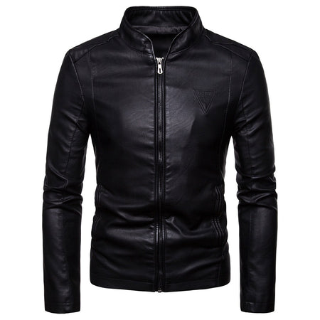 Men’s Autumn-Winter Korean Fashion Stand-Collar Leather Jacket