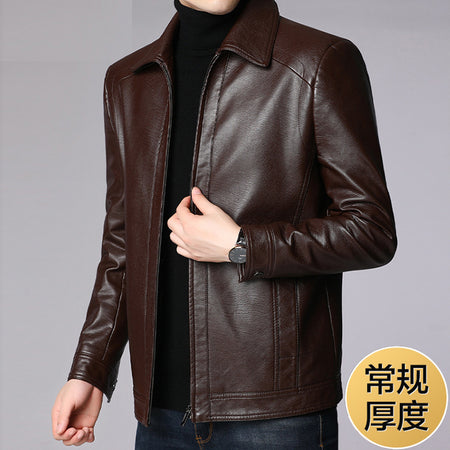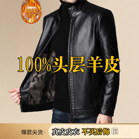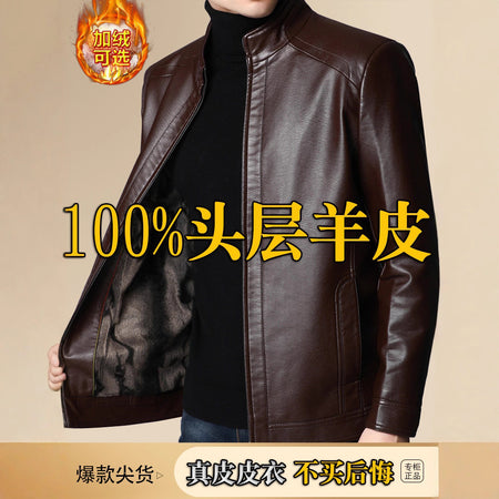 Stay warm and stylish this season with the Haining Genuine Leather Jacket for Men, designed for middle-aged and elderly dads. Crafted from soft sheepskin leather with a plus velvet thick lining, this jacket combines durability, comfort, and premium warmth—perfect for autumn and winter outings or casual occasions. ❄️🧥