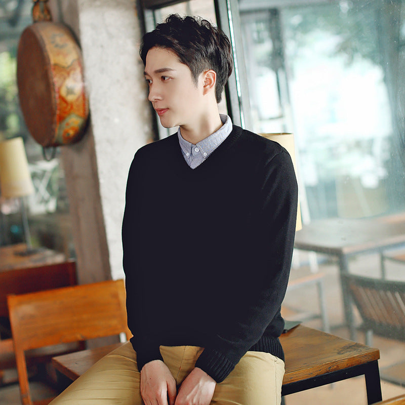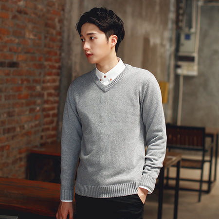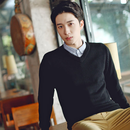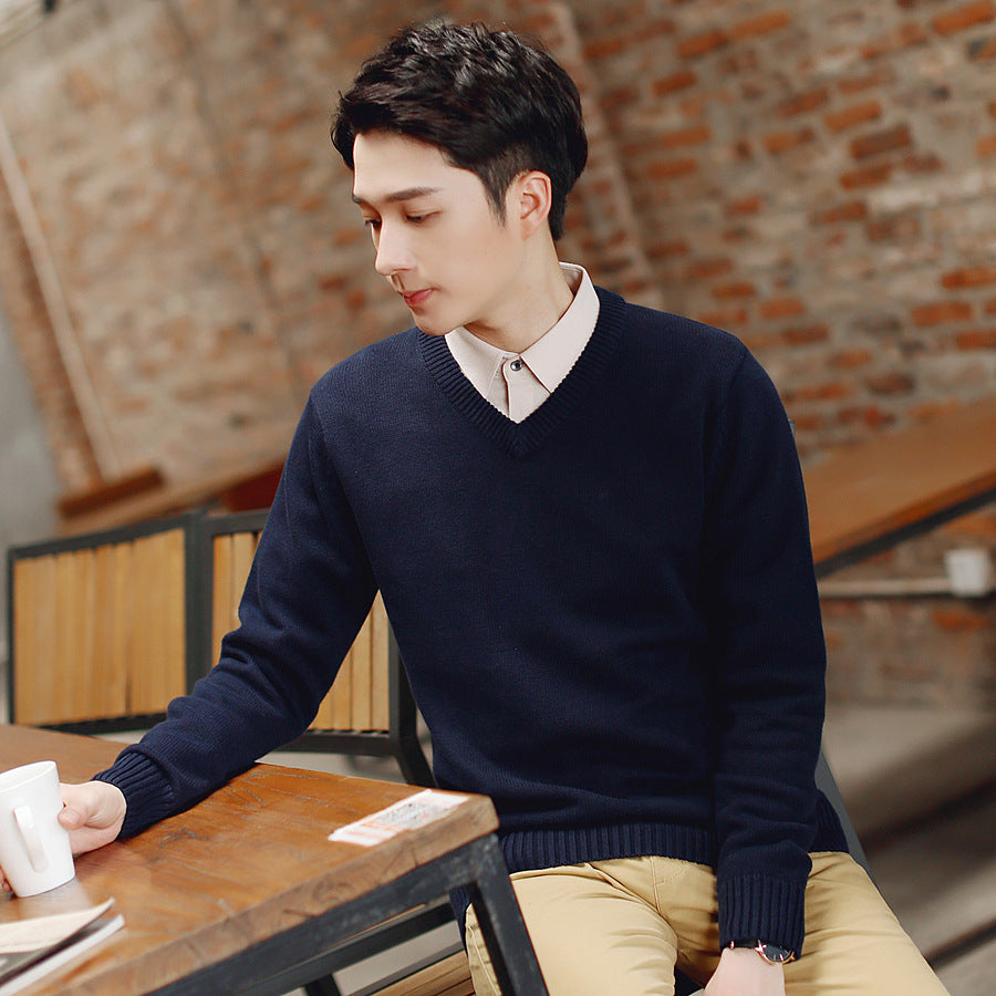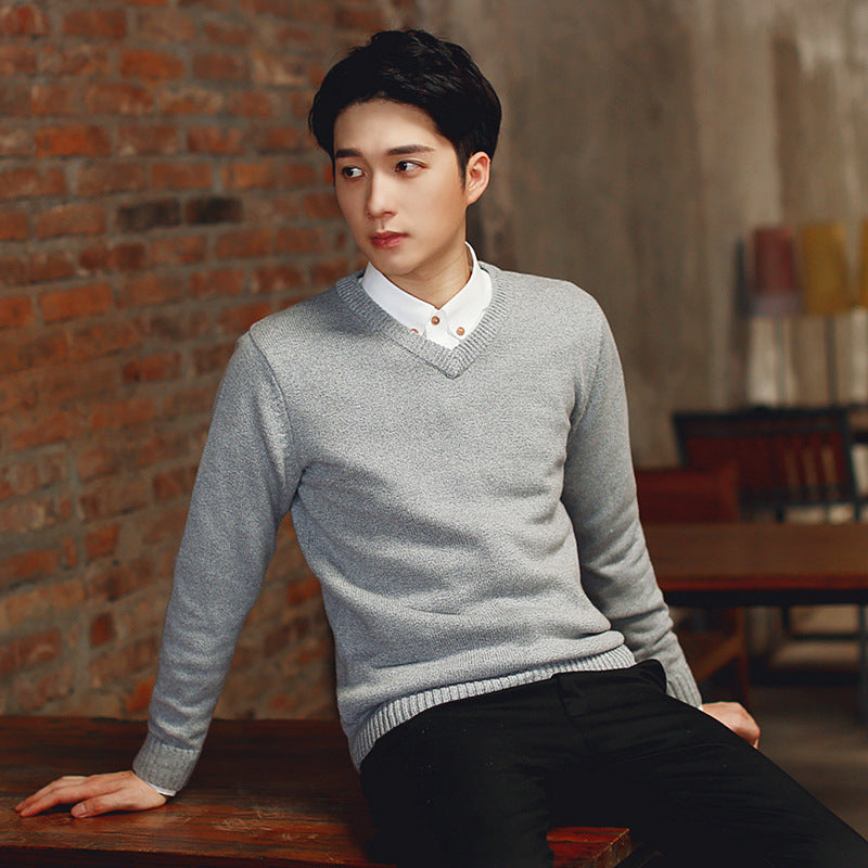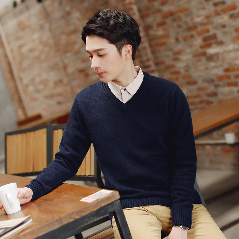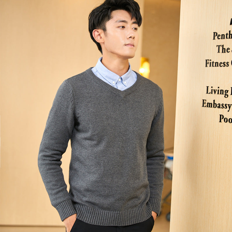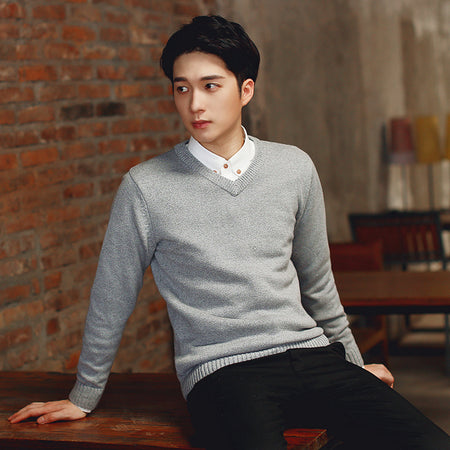 Men’s Autumn Winter V-Neck Sweater Slim-Fit Knitted Pullover