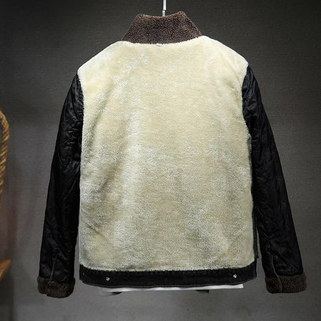 Upgrade your winter wardrobe with the Black Fleece-Lined Lamb Wool Denim Jacket—a thickened, cozy, and fashionable coat that keeps men warm and stylish all season. Order yours today and embrace modern streetwear winter fashion!