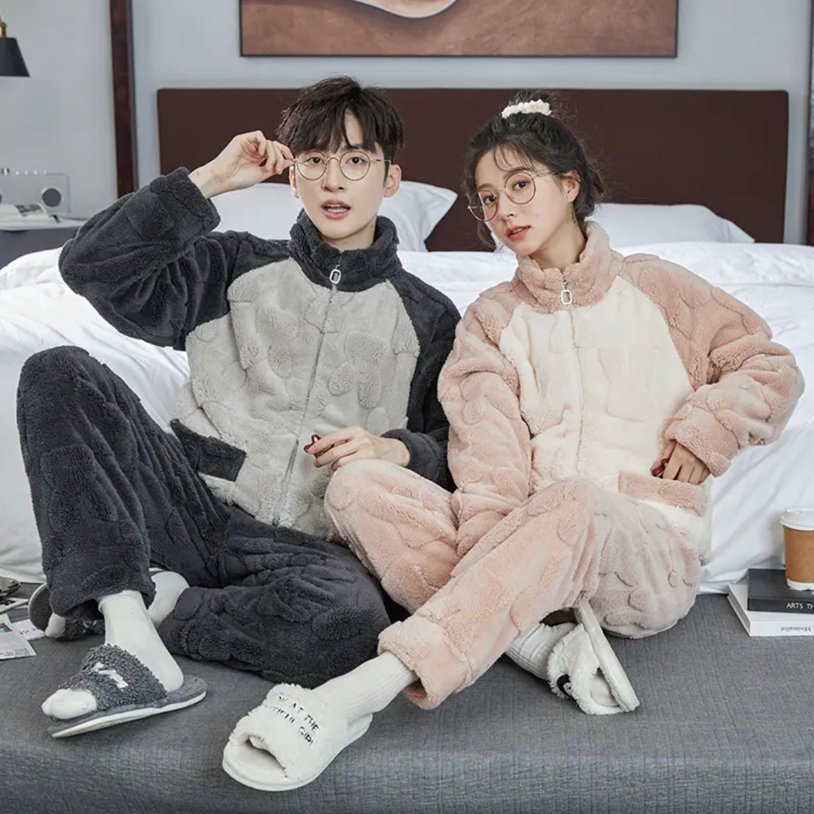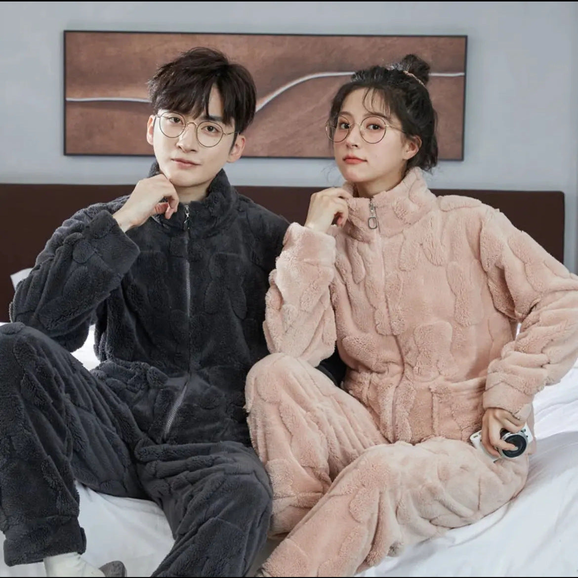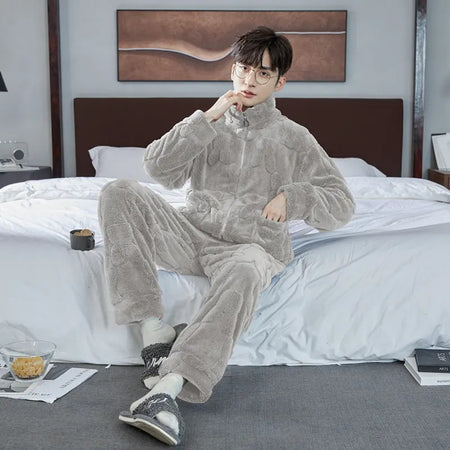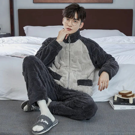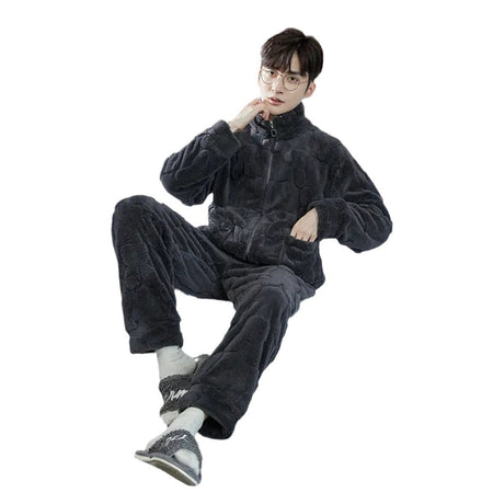 Men’s Coral Fleece Loungewear – Thick Zipper Set
