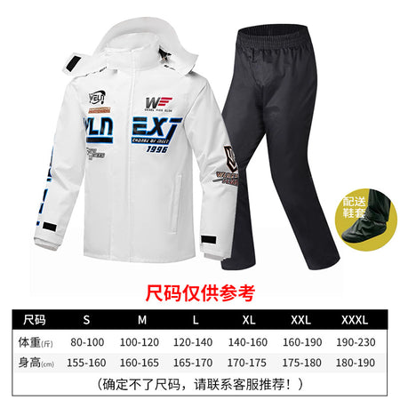 Full-Body Anti-Rainstorm Protection: Covers jacket and pants to keep you completely dry.