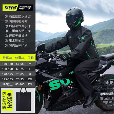 Men’s Full-Body Waterproof Motorcycle Rain Suit – Thick & Durable