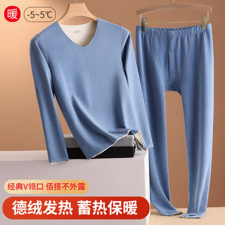 Men’s German Velvet Thermal Suit | V-Neck Winter Base Layer