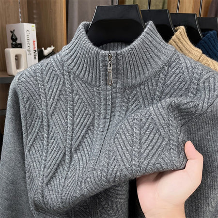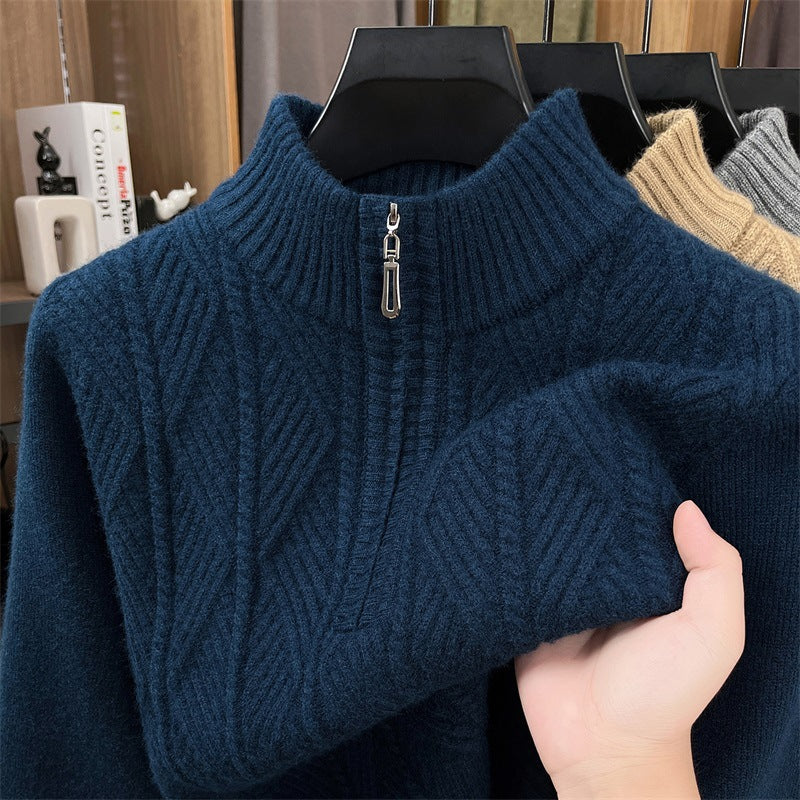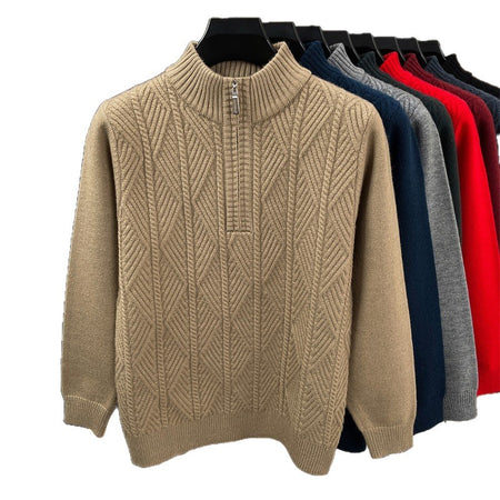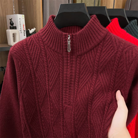 Men’s Half-Turtleneck Zipper Knit Sweater Warm Casual