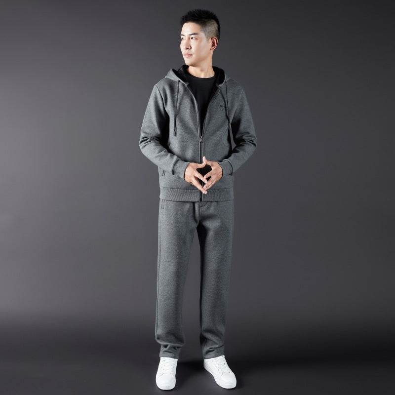 Men’s Hooded Sports Suit – Autumn Velvet Sweatshirt & Straight Pants Set