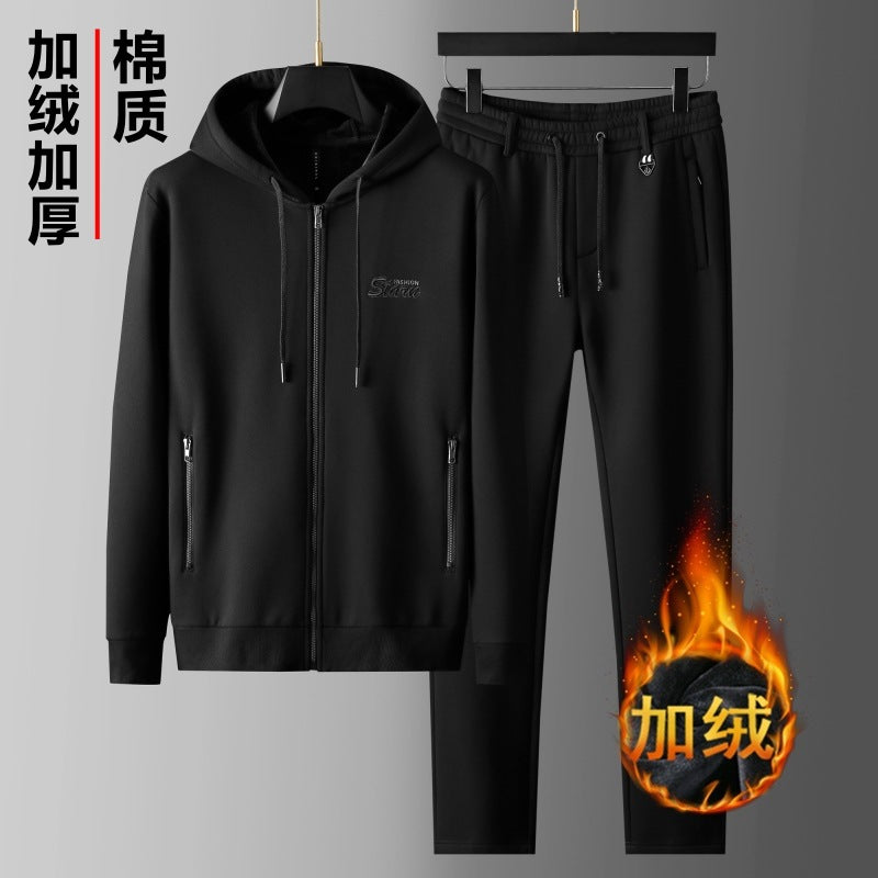 Upgrade your casual sportswear collection with this men’s hooded velvet sports suit – combining comfort, style, and versatility for autumn wear.
