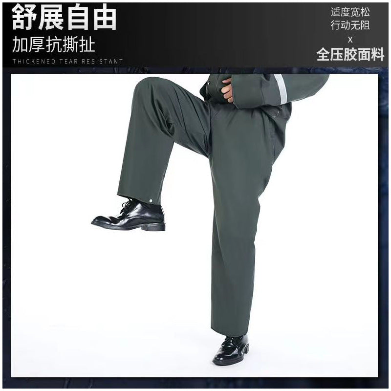 Perfect for delivery riders, cyclists, and commuters, this raincoat and pants set keeps you dry and protected in stormy weather. Its thickened knitted fabric provides warmth and durability, while the split design allows unrestricted movement. Lightweight yet robust, it’s ideal for daily use, long rides, or sudden rainstorms.