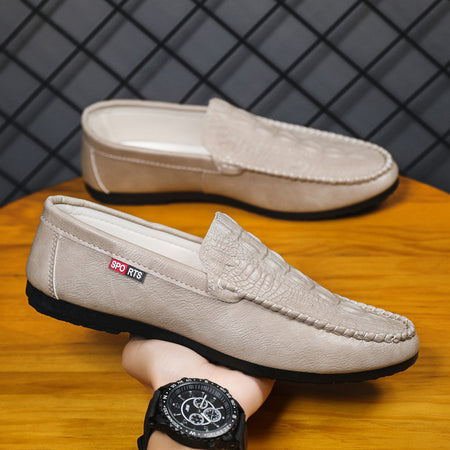 Men’s Korean Slip-On Loafers – Crocodile Pattern Casual Shoes