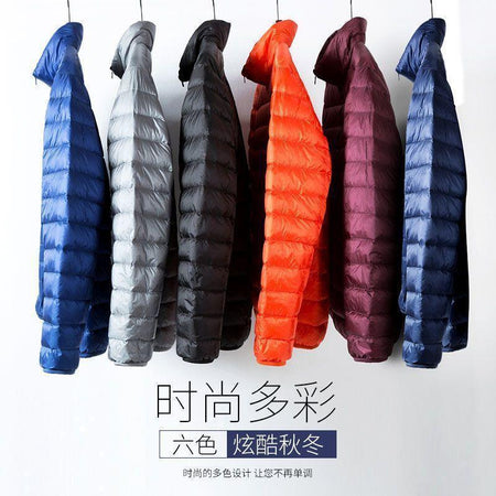 Men’s Lightweight Hooded Down Cotton Jacket – Short Stand-Collar, Plus Size
