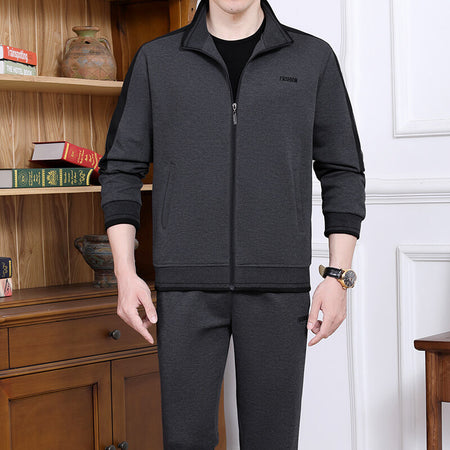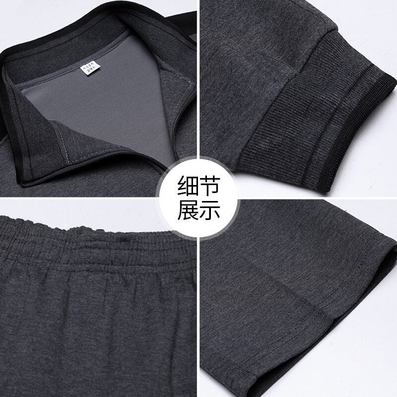 Men’s Middle-Aged Thickened Two-Piece Sports Suit for Spring-Autumn